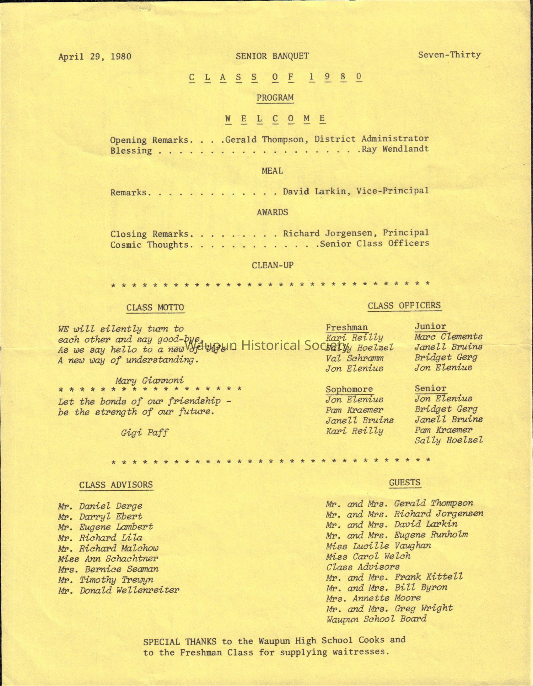Waupun High School "Senior Banquet" (Apr 29 1980)
