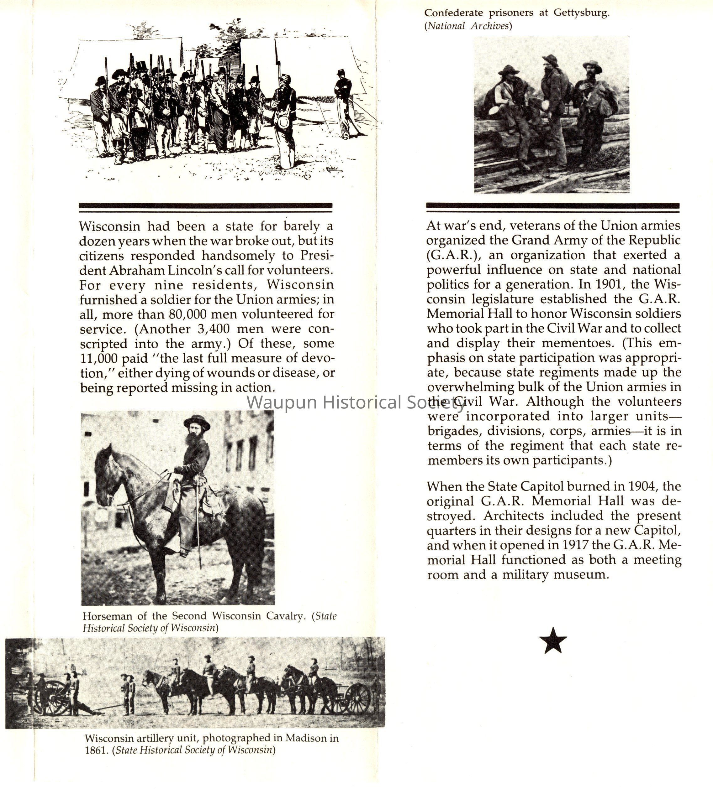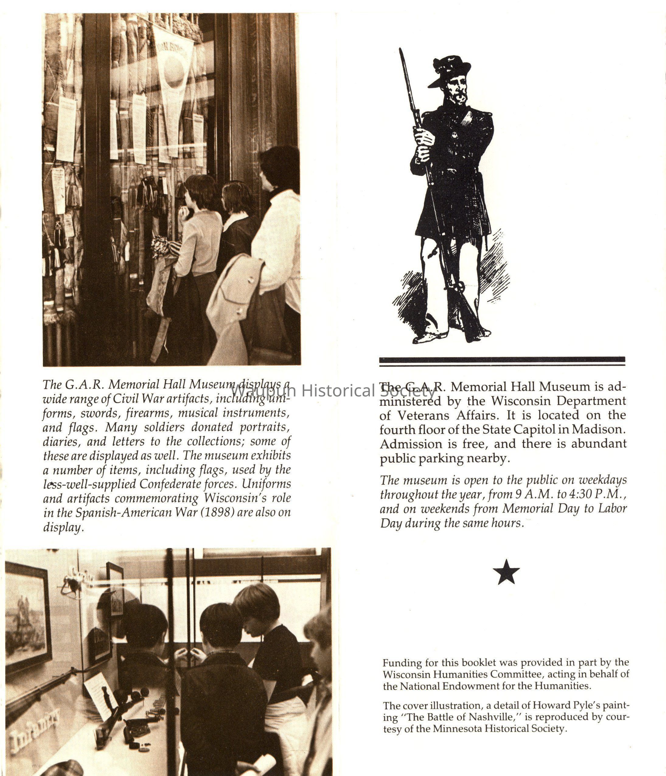 Civil War. This brouchure is an advertisement for the G.A. R. Memorial Hall in the State Capital.Acquisition
