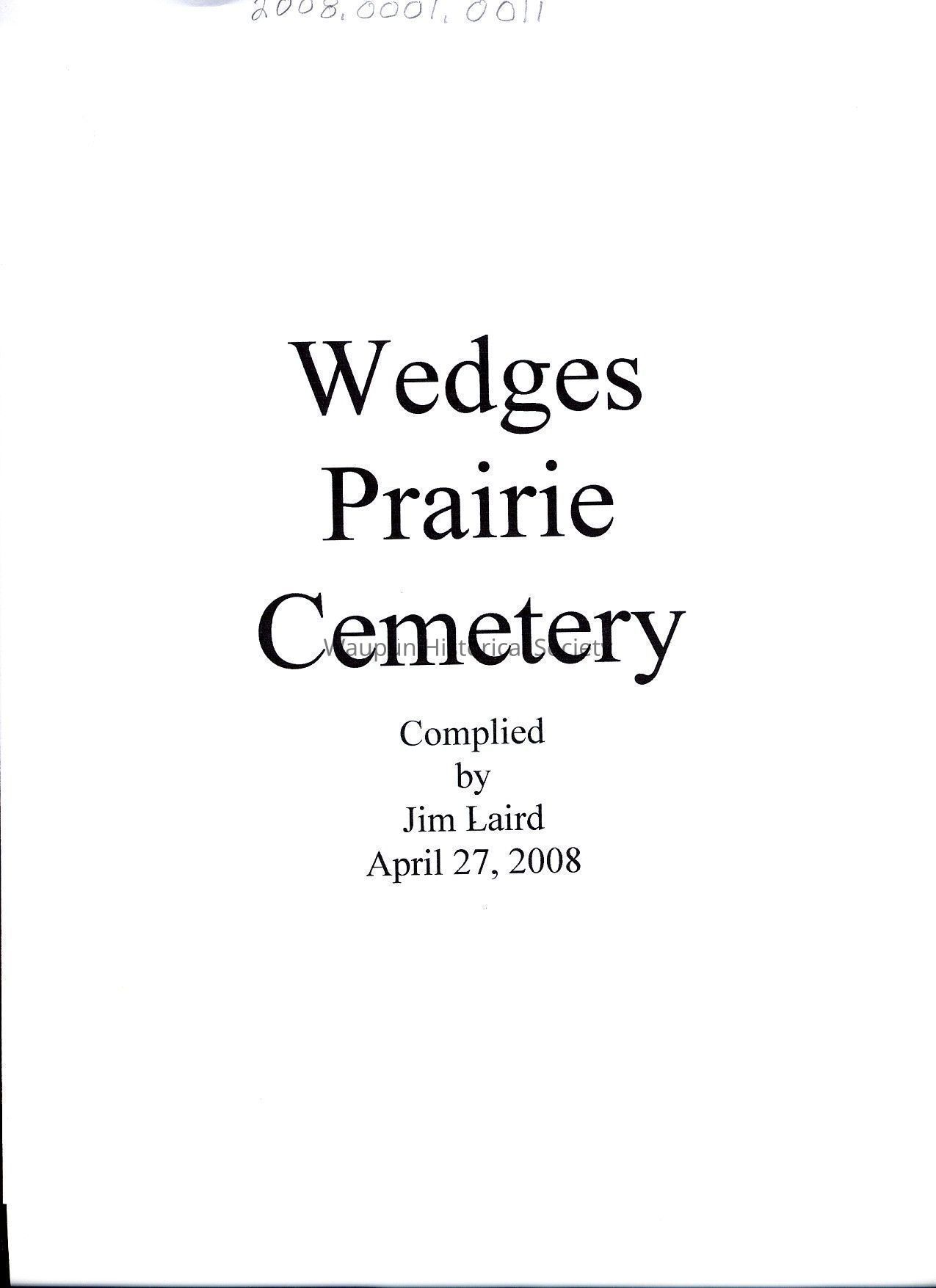Wedges Prairie Cemetery listing. This listing was created by Jim Laird with the help of Don Wallendal and a previous publication by Mrs. Jean R. Rentmeister and Mrs. Ruth S. Worthing. It contains photos of the Congregational Church that was at that site, the layout of the cemetery, veterans buried in the cemetery, all people buried in the cemetery as of April 27, 2008, and then information about the burial sites. Some obituraries are included.