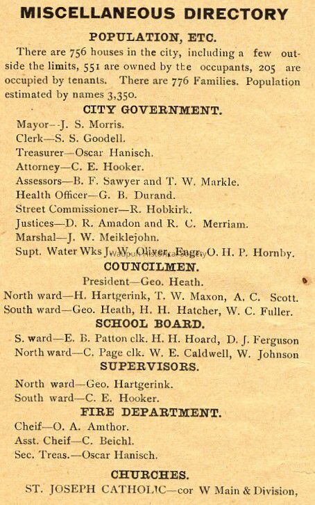 Directory of miscellaneous information about the population, city government, councilmen, school board, supervisors, fire department officers and churchesAcquisition
