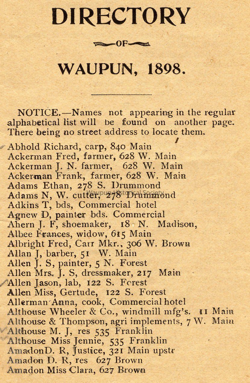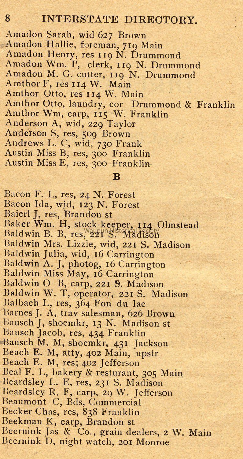 First page of alphabetical listings of residents having street addresses.Acquisition
