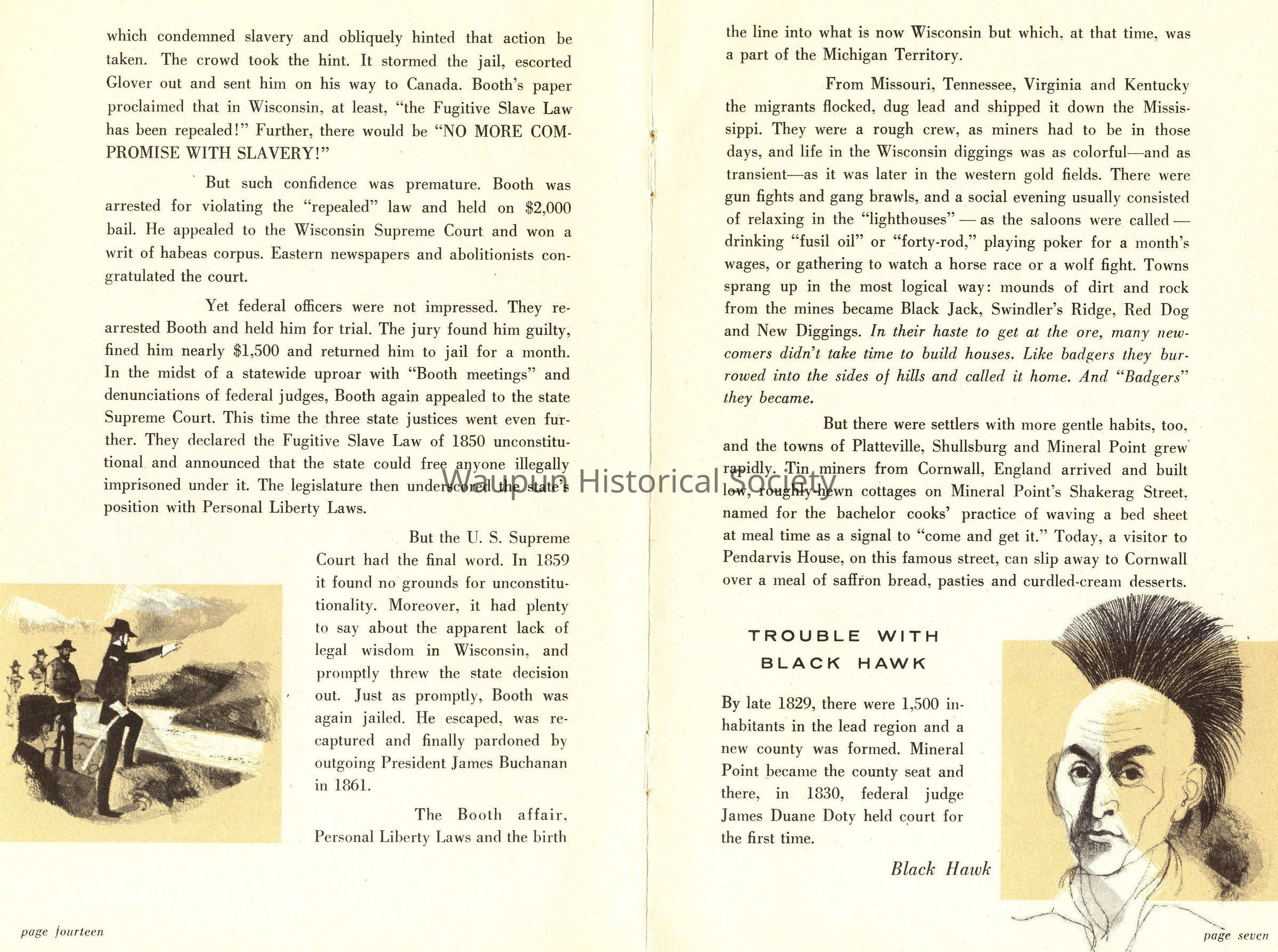 Shortly before the War of 1812, miners came up from Missouri to dig the lead from the hills of northwestern Illinois, near Fever River. Soon the search for richer veins carried prospectors farther north across the line into what is now Wisconsin but which, at that time, was a part of the Michigan Territorv.