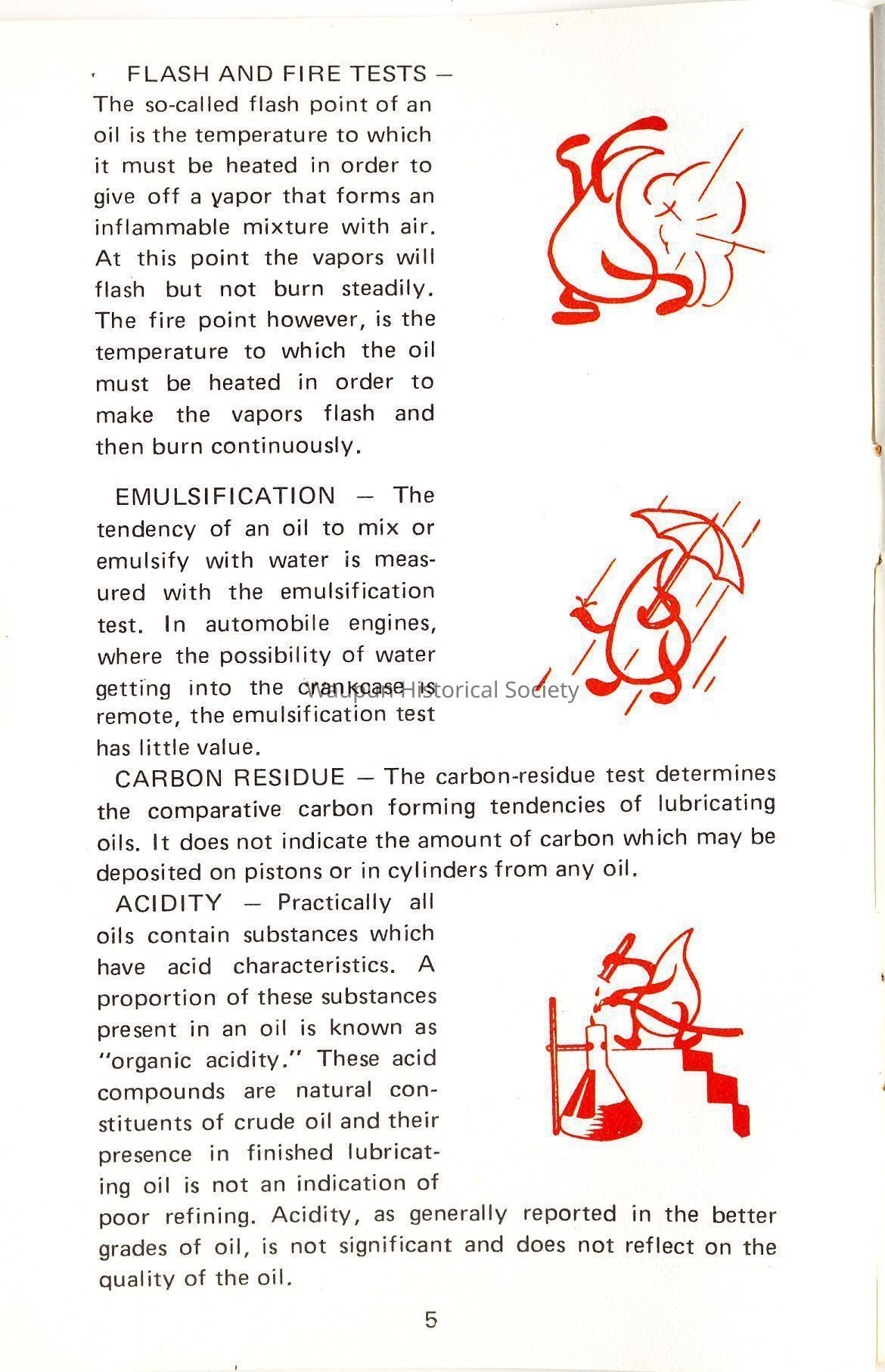FLASH AND FIRE TESTS - The so-called flash point of an oil is the temperature to which it must be heated in order to give off a vapor that forms an inflammable mixture with air. At this point the vapors will flash but not burn steadily. The fire point however, is the temperature to which the oil must be heated in order to make the vapors flash and then burn continuously.