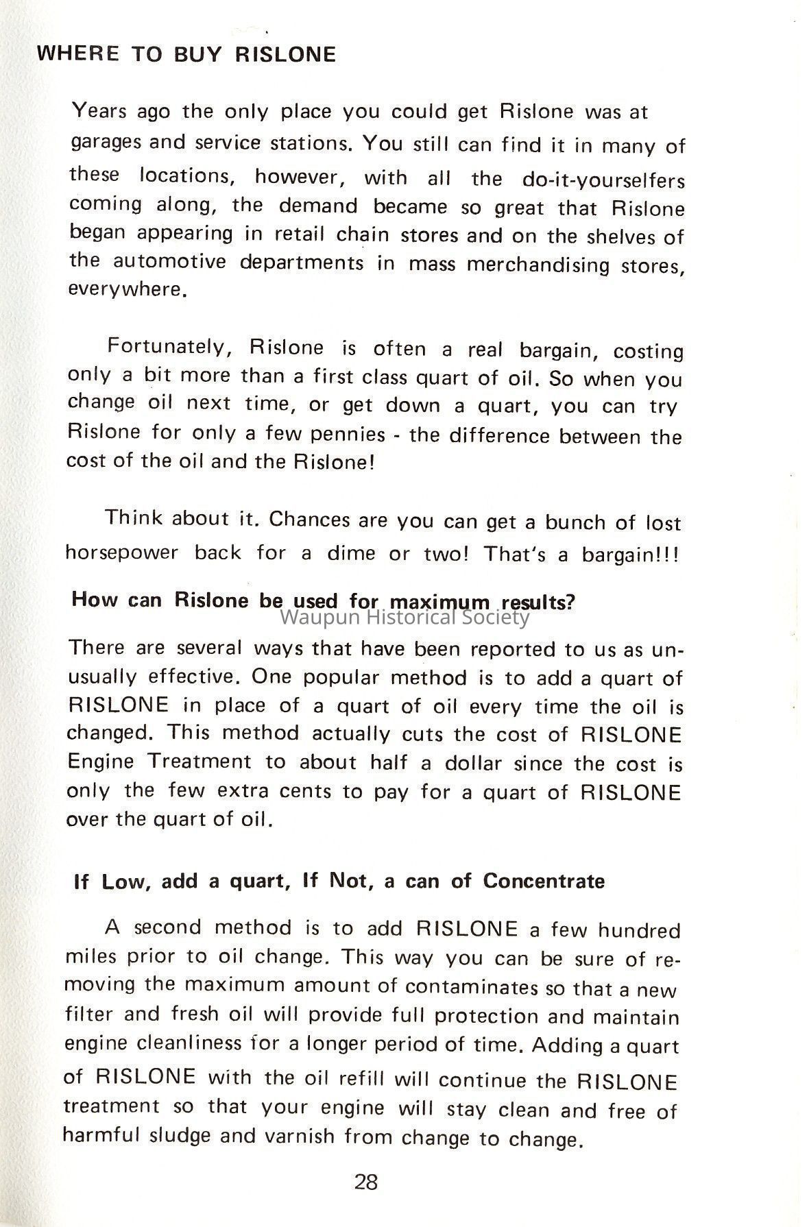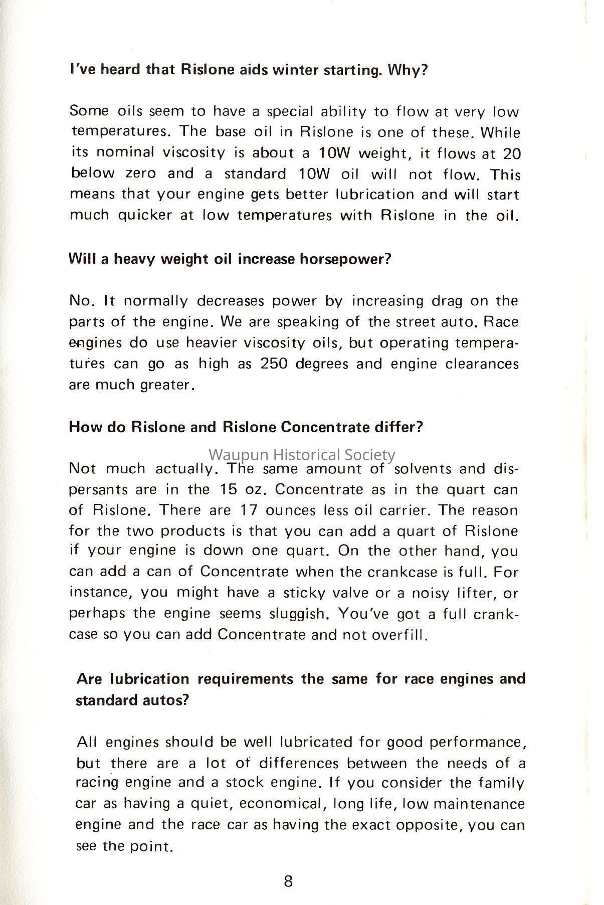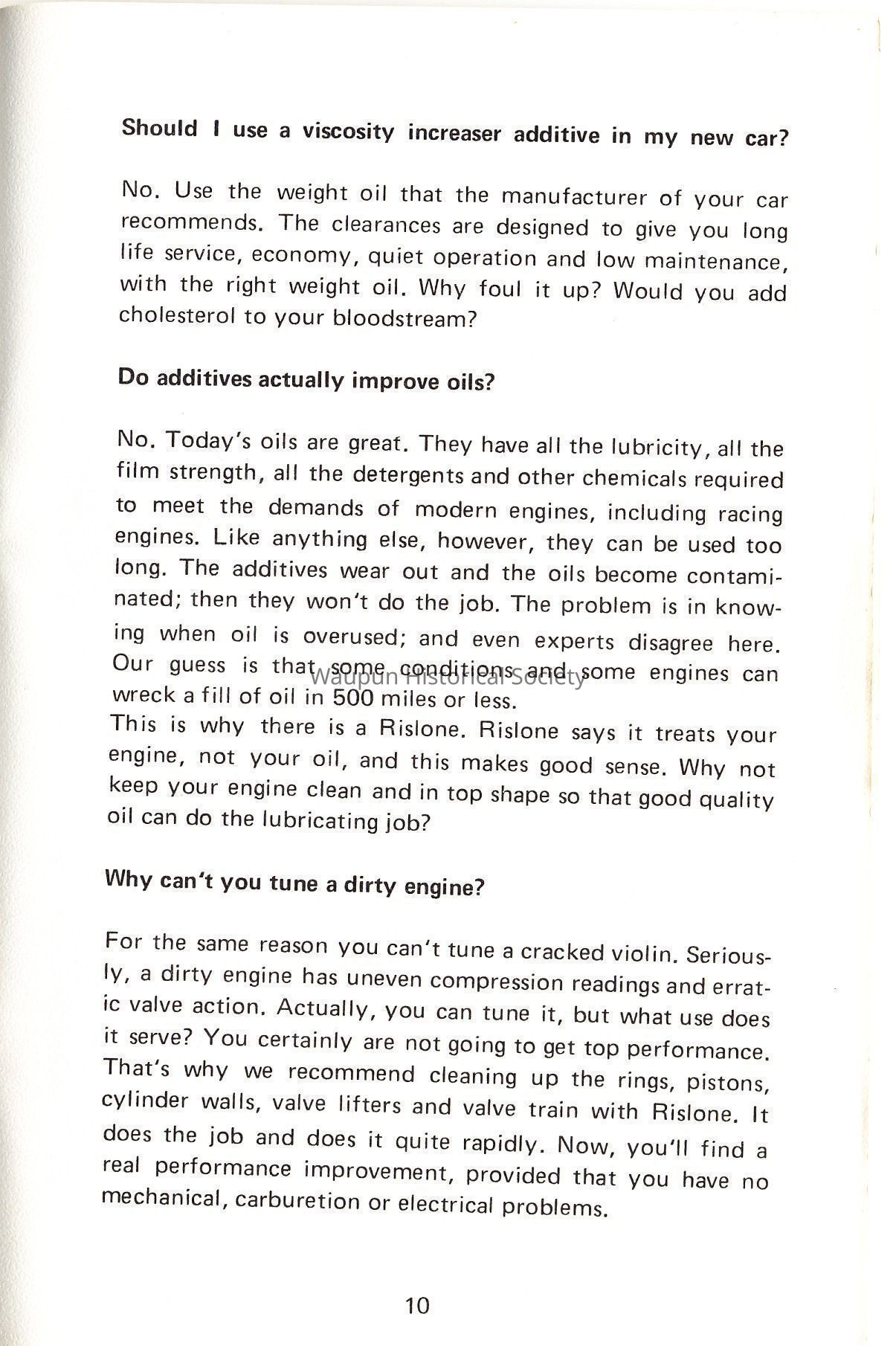 Physical Description: Small booklet advertising Rislone products. 4" X 6"