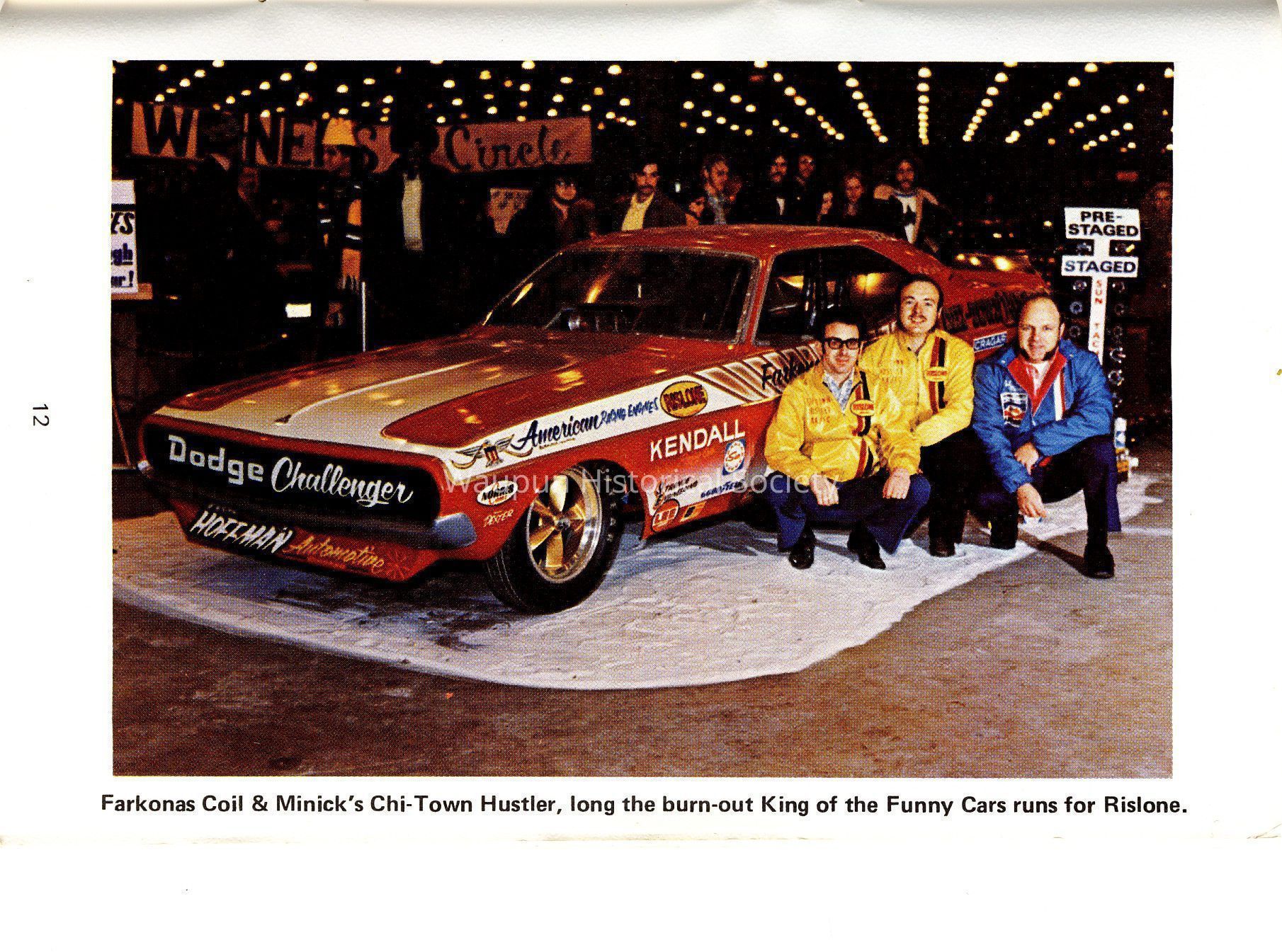 Farkonas Coil & Minick's Chi-Town Hustler, long the burn-out King of the Funny Cars runs for Rislone.