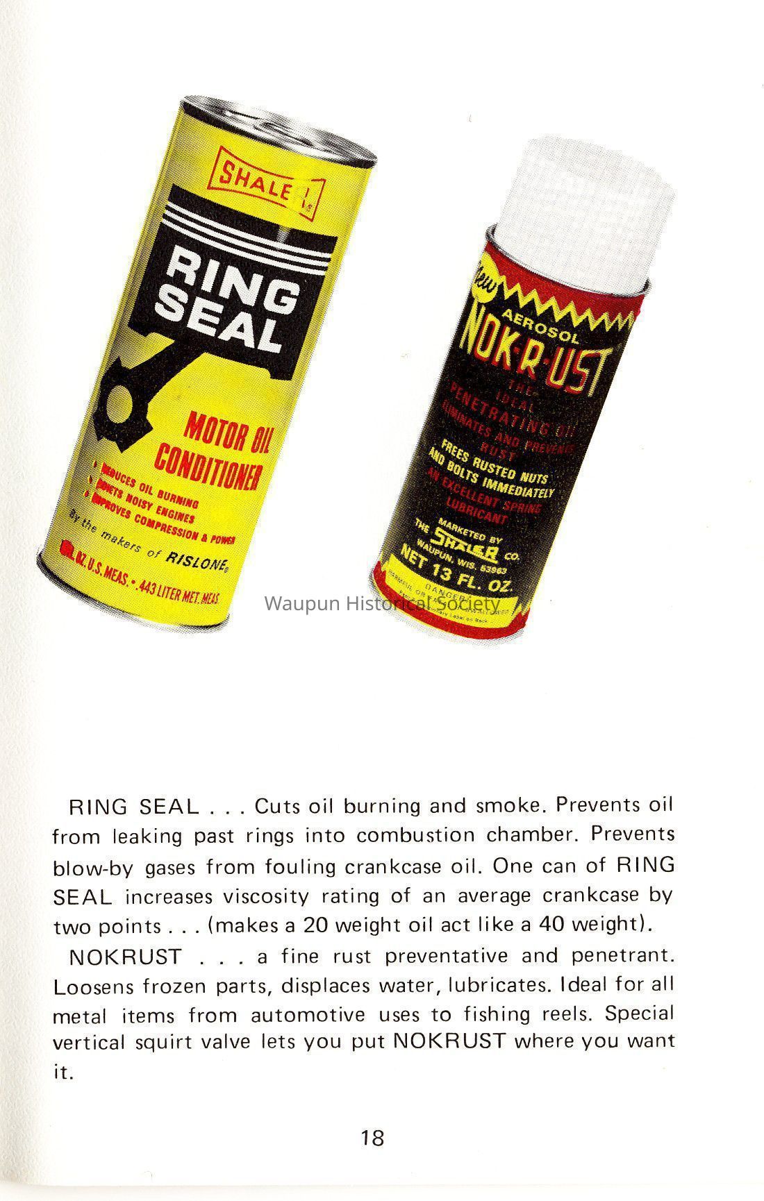 First of all, Rislone is a lubricating oil and is so taxed by the government. You may think this is an odd statement, but it is not. Ring Seal, the Shaler Company's viscosity improver, like all VI's is not considered or taxed as a lubricating oil. Other products based on kerosene and furnace oils are not taxed for they are not lubricants.