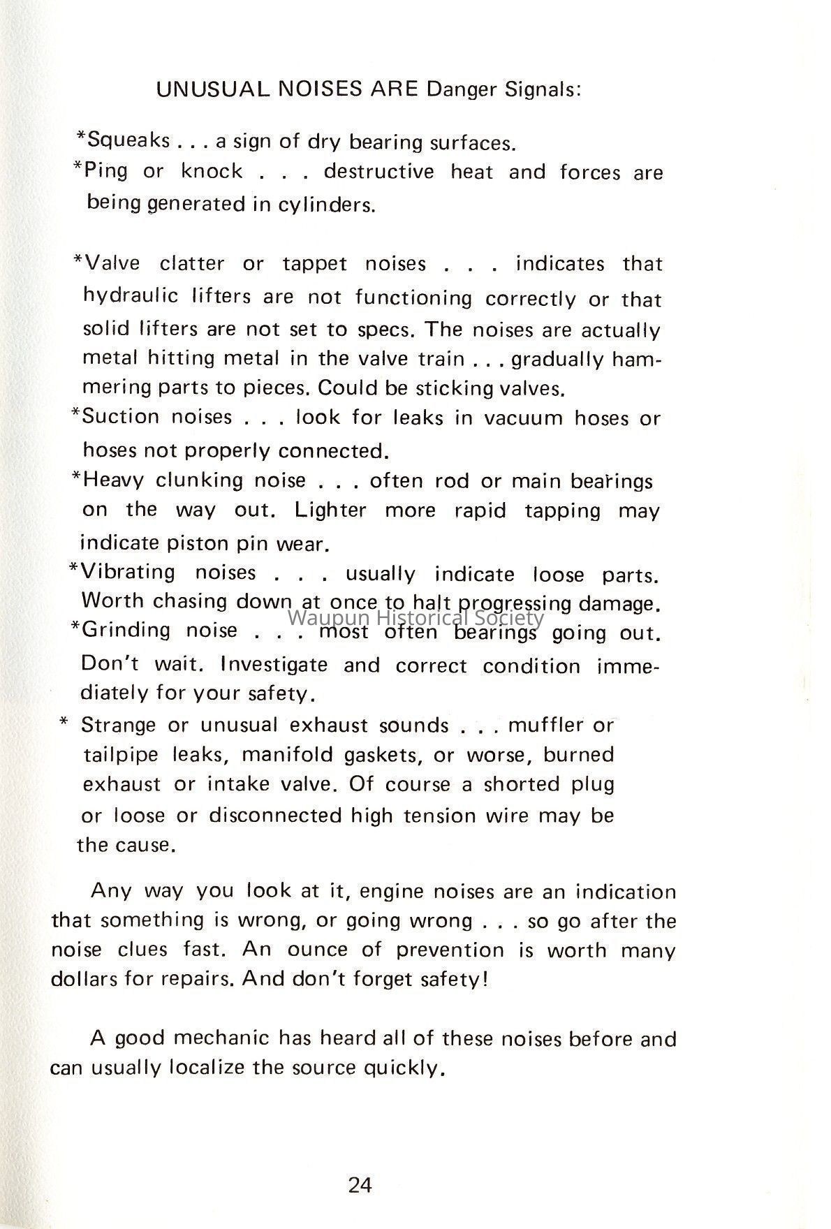 *Vibrating noises . . . usually indicate loose parts. Worth chasing down at once to halt progressing damage.