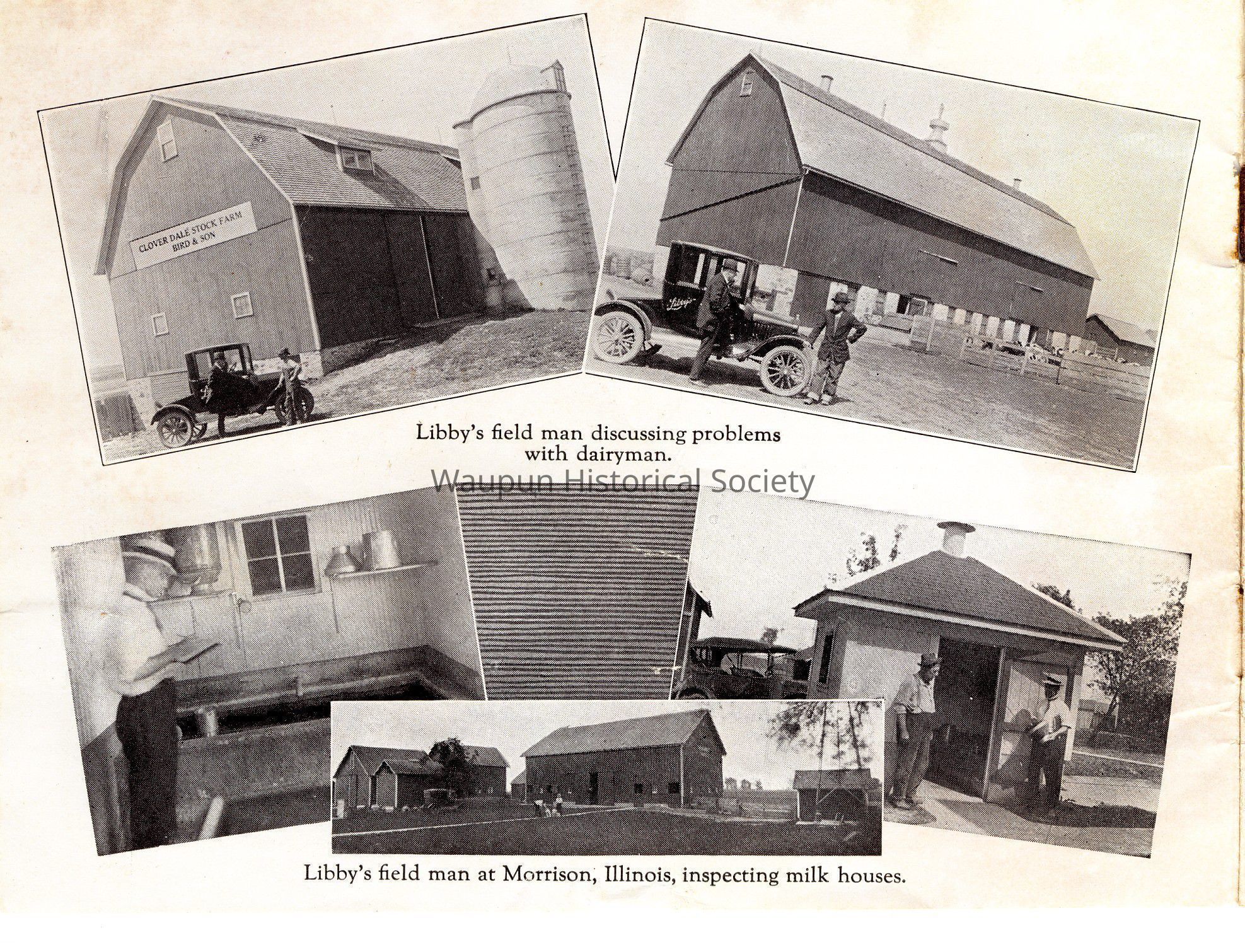 Caption under photo: [Libby's field man at Morrison, Illinois, inspecting milk houses.]