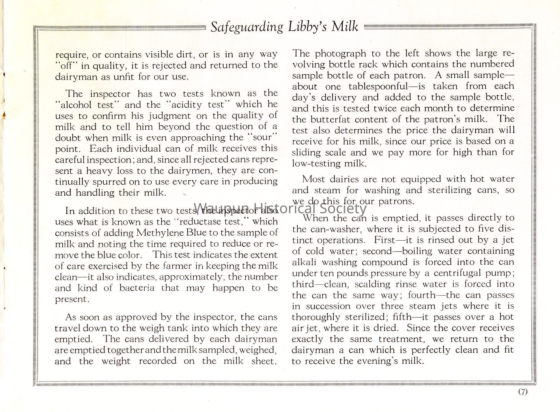 The Libby field man also closely inspects the milk houses to see that they are up to our standard in details of construction, sanitation, and cleanliness of the utensils used.