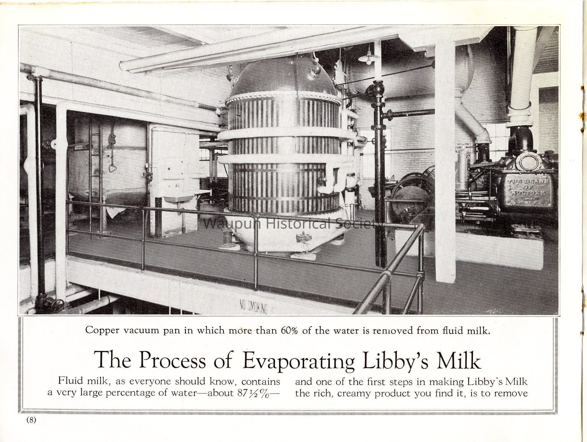 Caption under photo: [Copper vacuum pan in which more than 60% of the water is removed from fluid milk.]