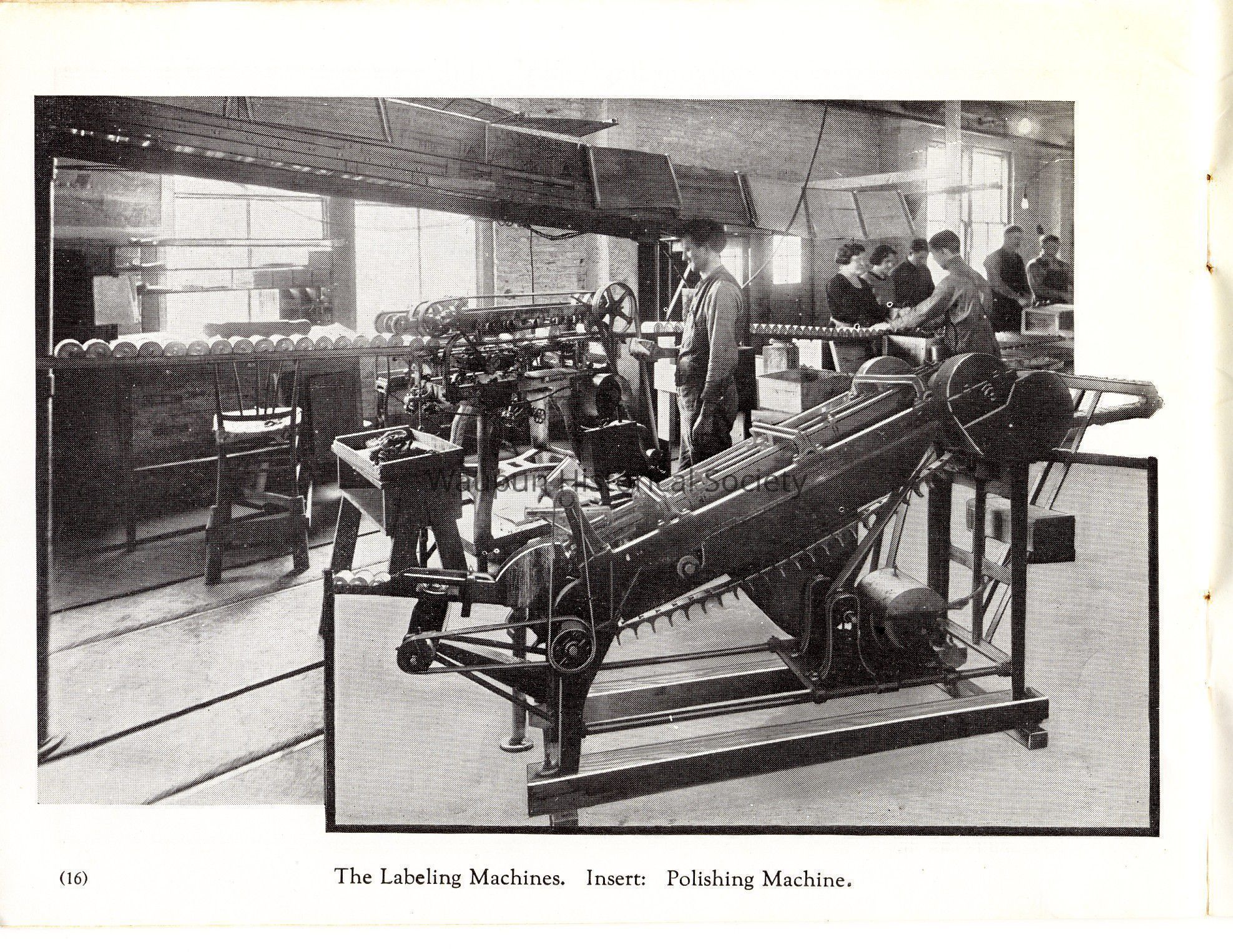 Caption under photo: [The Labeling Machines. Insert: Polishing Machine.]