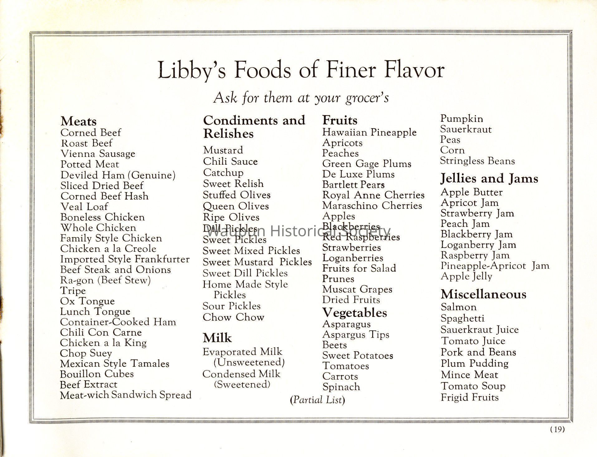 Extended Description: Booklet from Libby, McNeill & Libby. The Siligan Containers Corp. Plant in Waupun was at one time in its history a condensaries and was known as Libby, McNeill and Libby. Booklet Jim Laird purchased on eBay.
