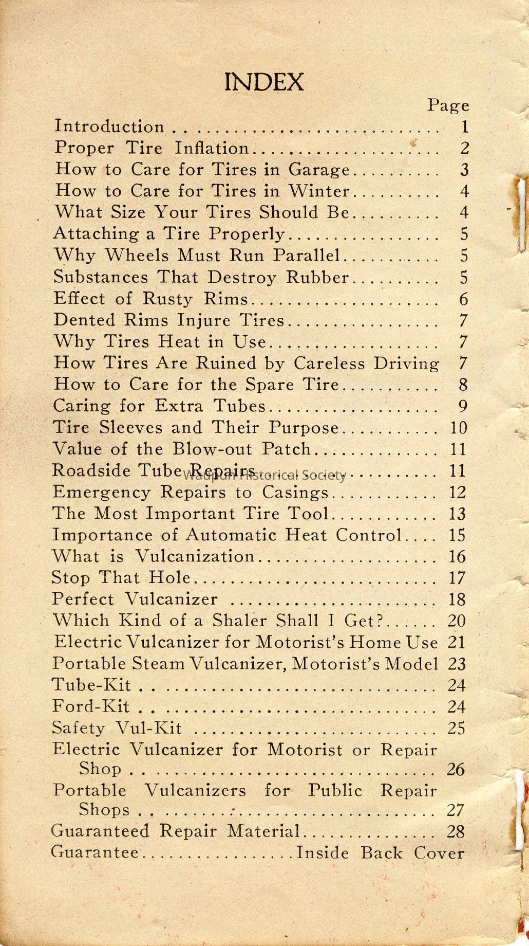 The object of this handbook is to show every Motorist how to get the greatest possible mileage out of his tires. It also shows the quickest ways out of the tire troubles that are liable to occur to any Motorist.