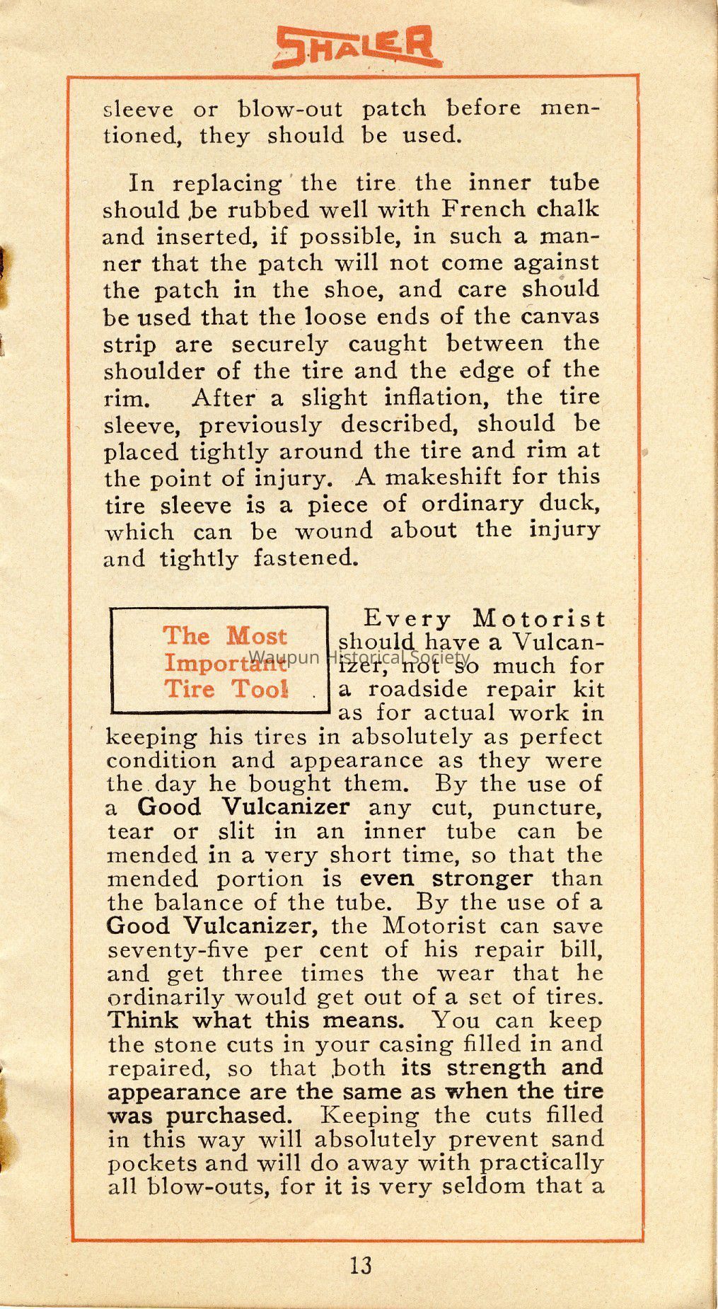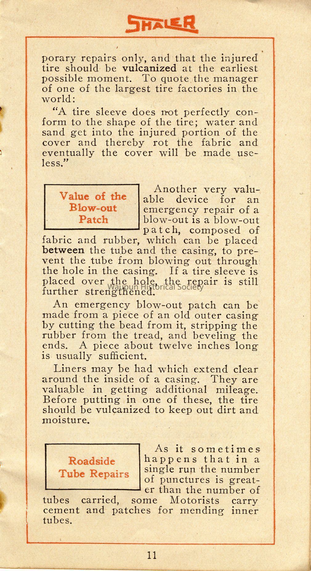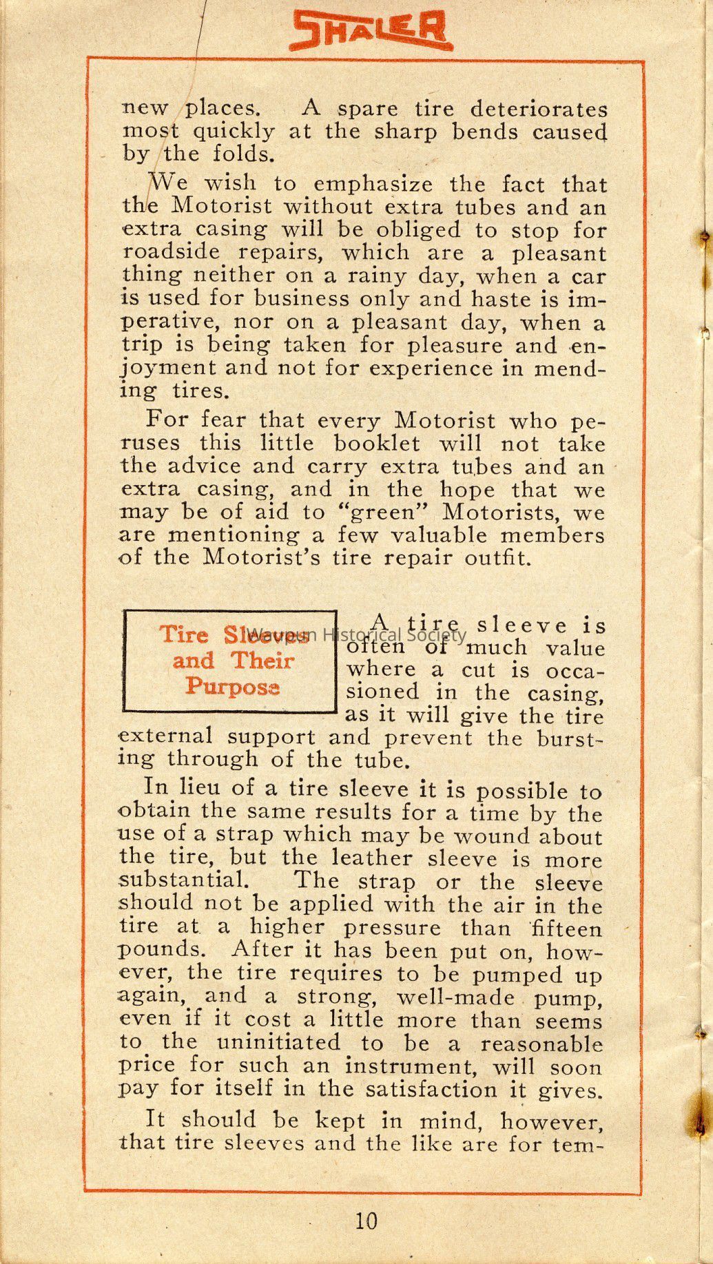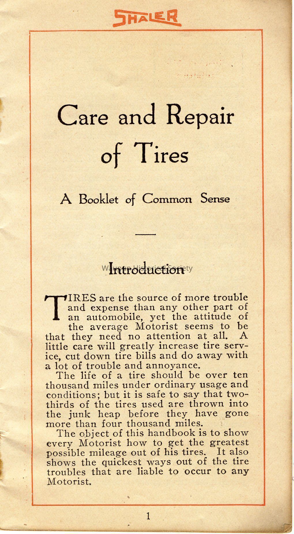 Booklet, Shaler, Care and Repair of TiresEntry/Object ID