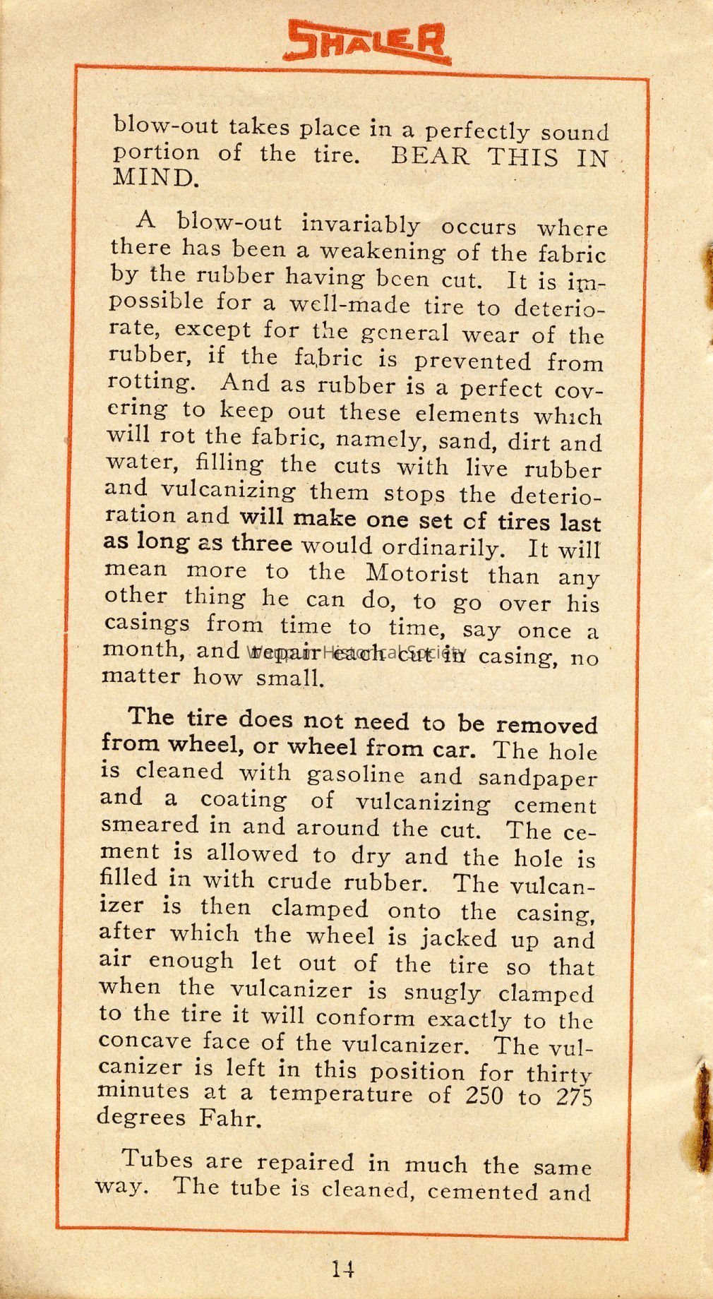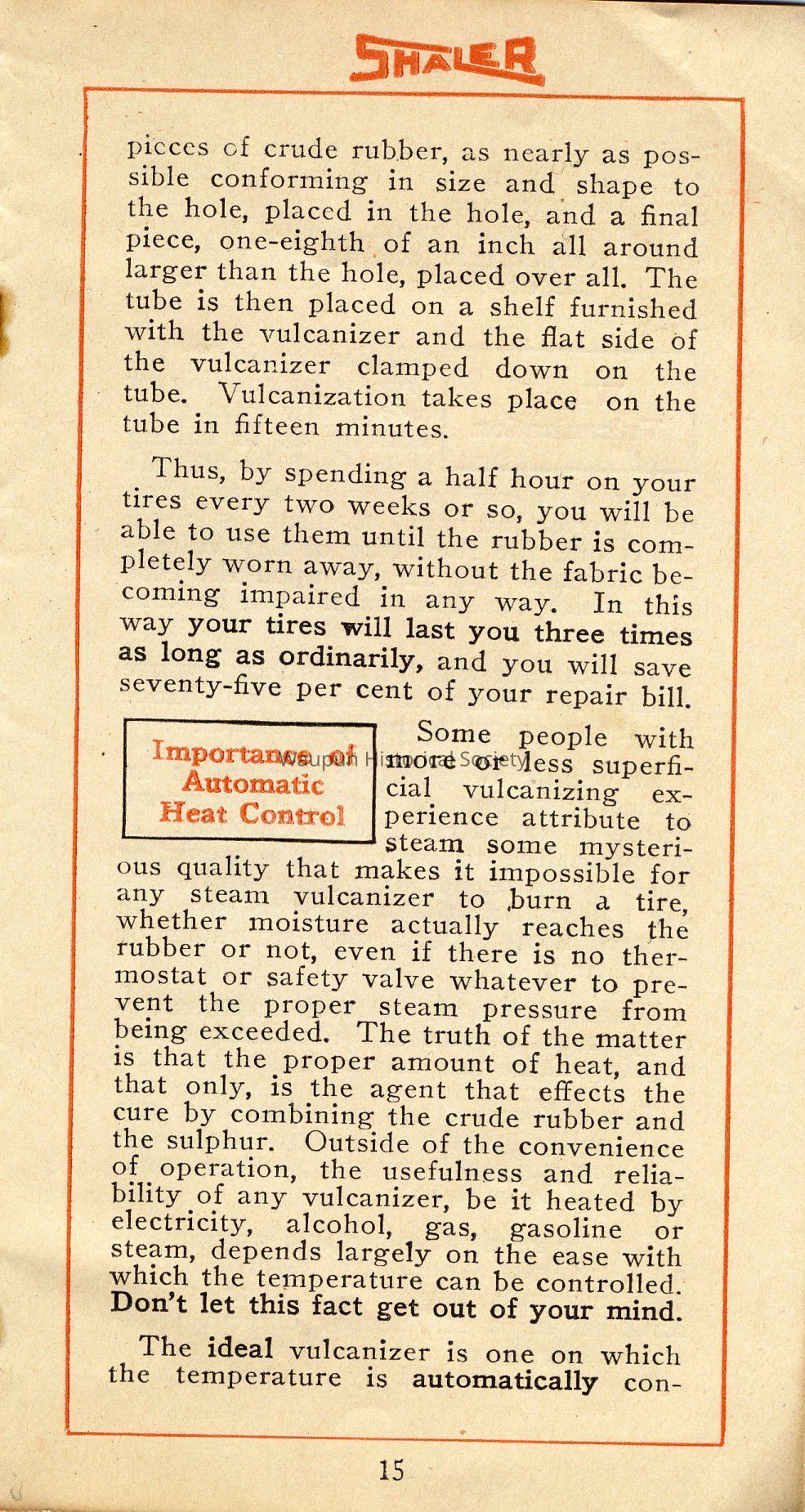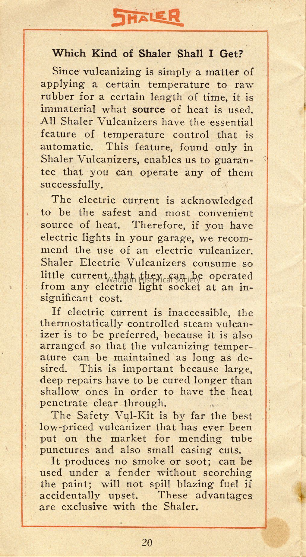 Physical Description: Booklet advertising Shaler Vulcanizing Products.