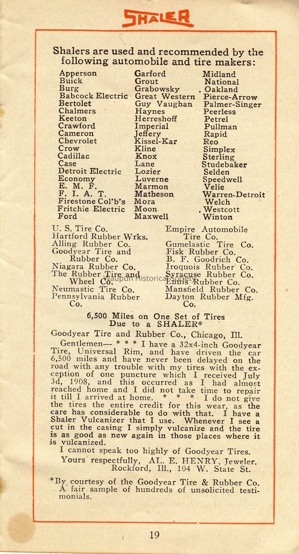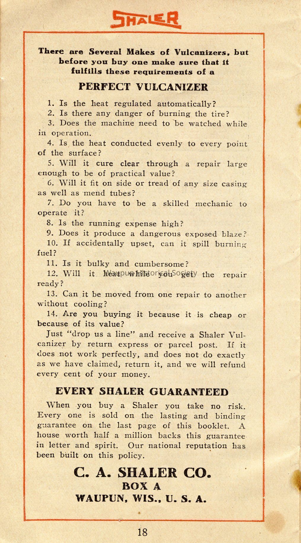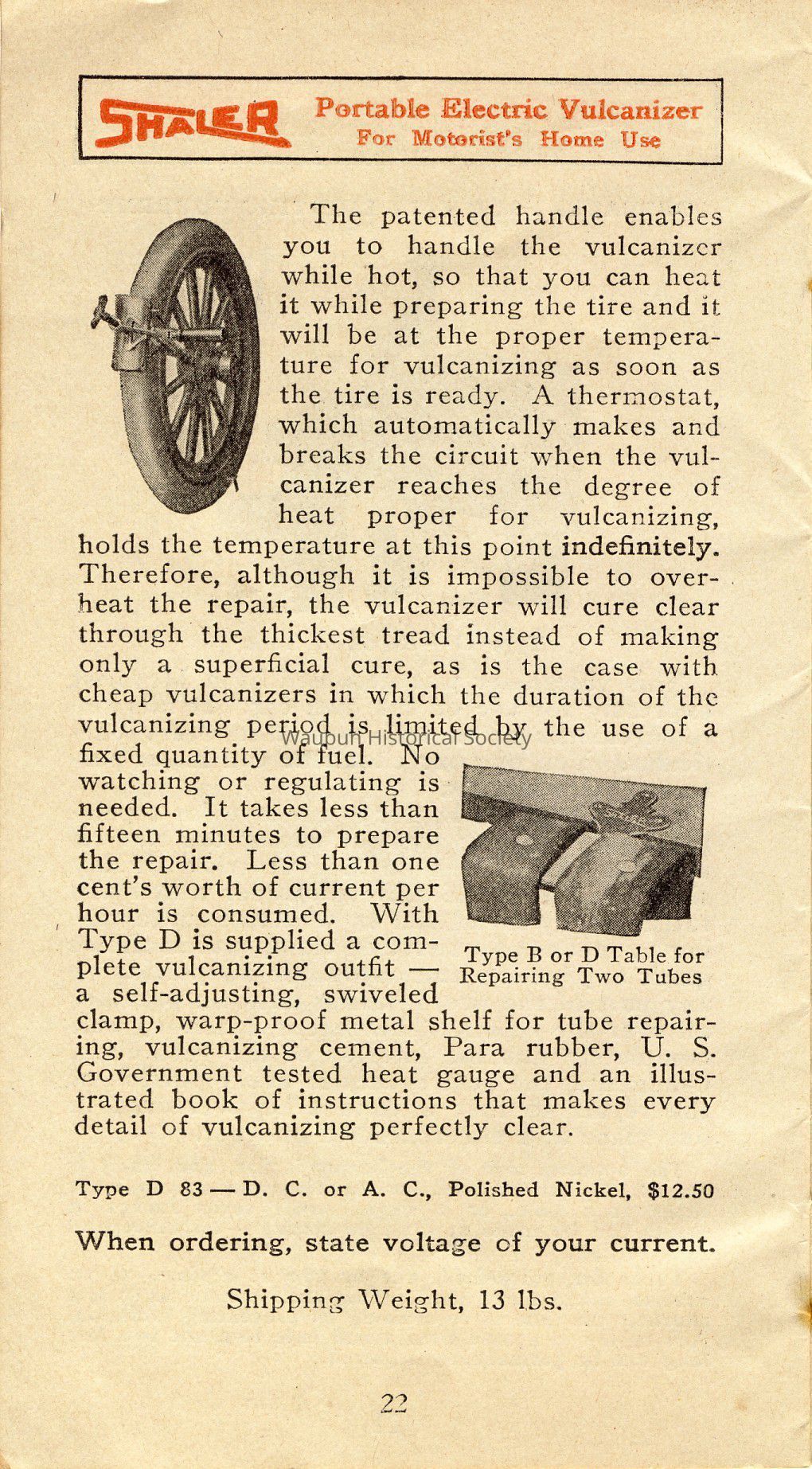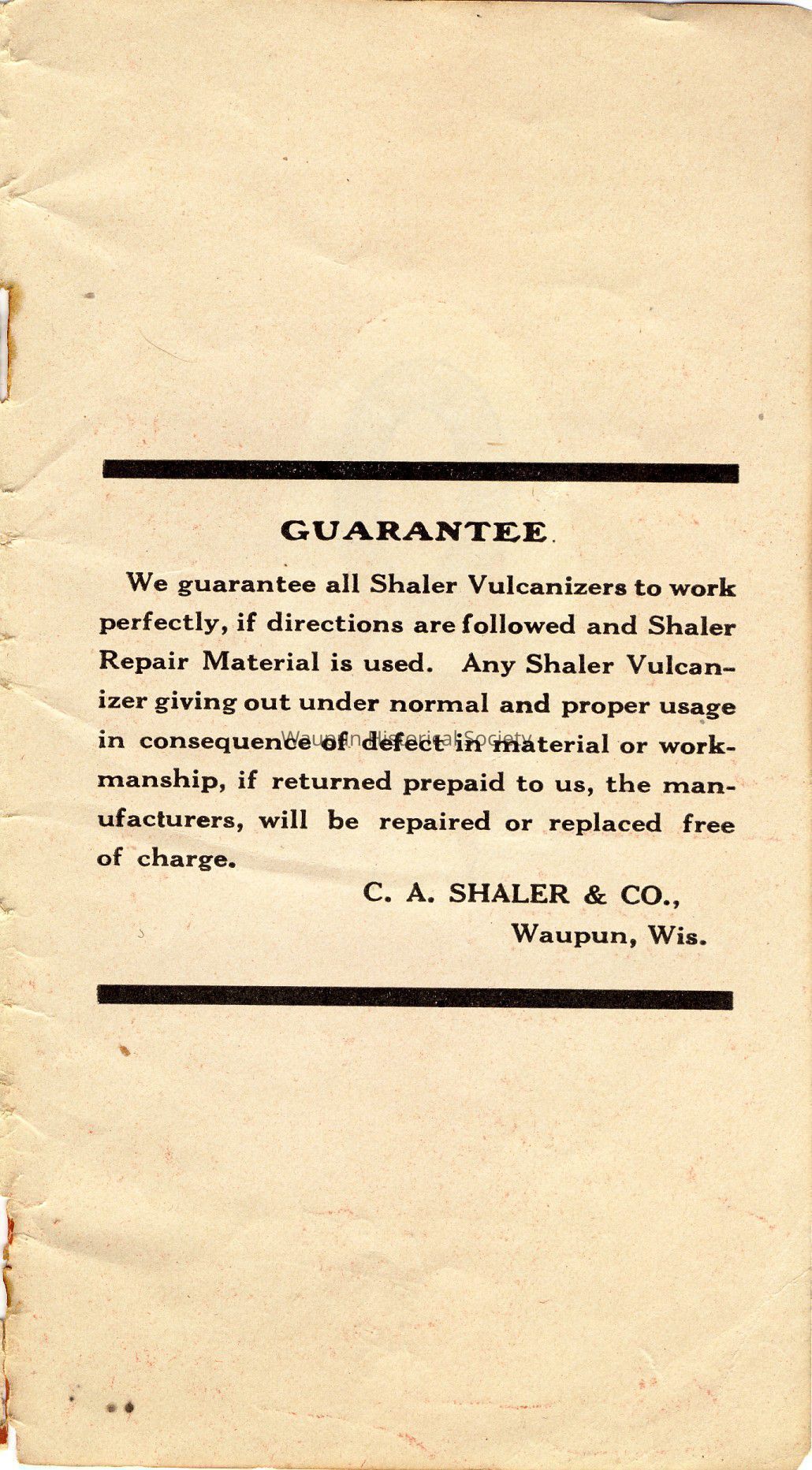 Physical Description: Booklet advertising Shaler Vulcanizing Products.