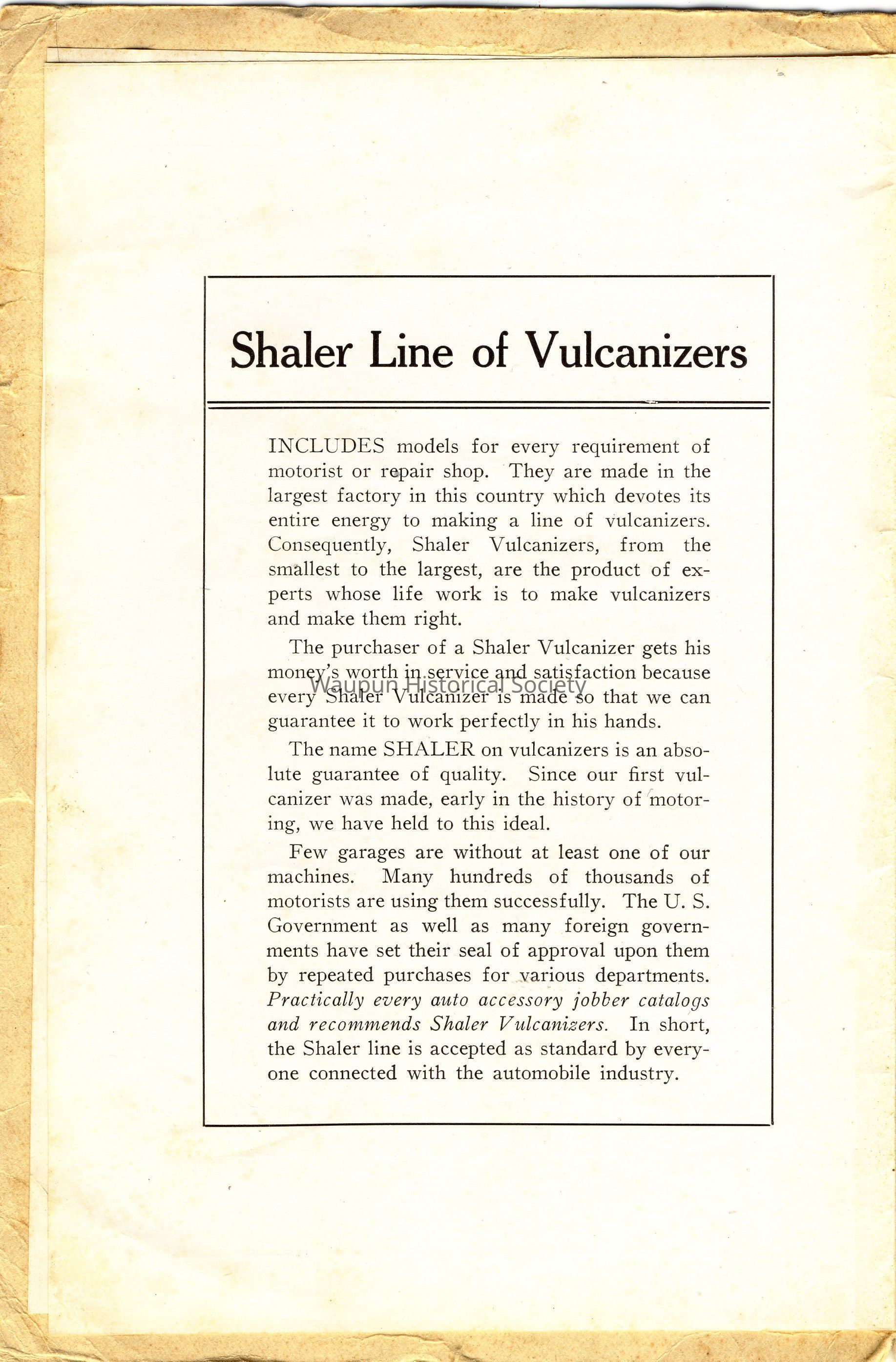 Shaler Booklet advertising their Tire Vulcanizers. Purchased by Jim Laird on eBay.