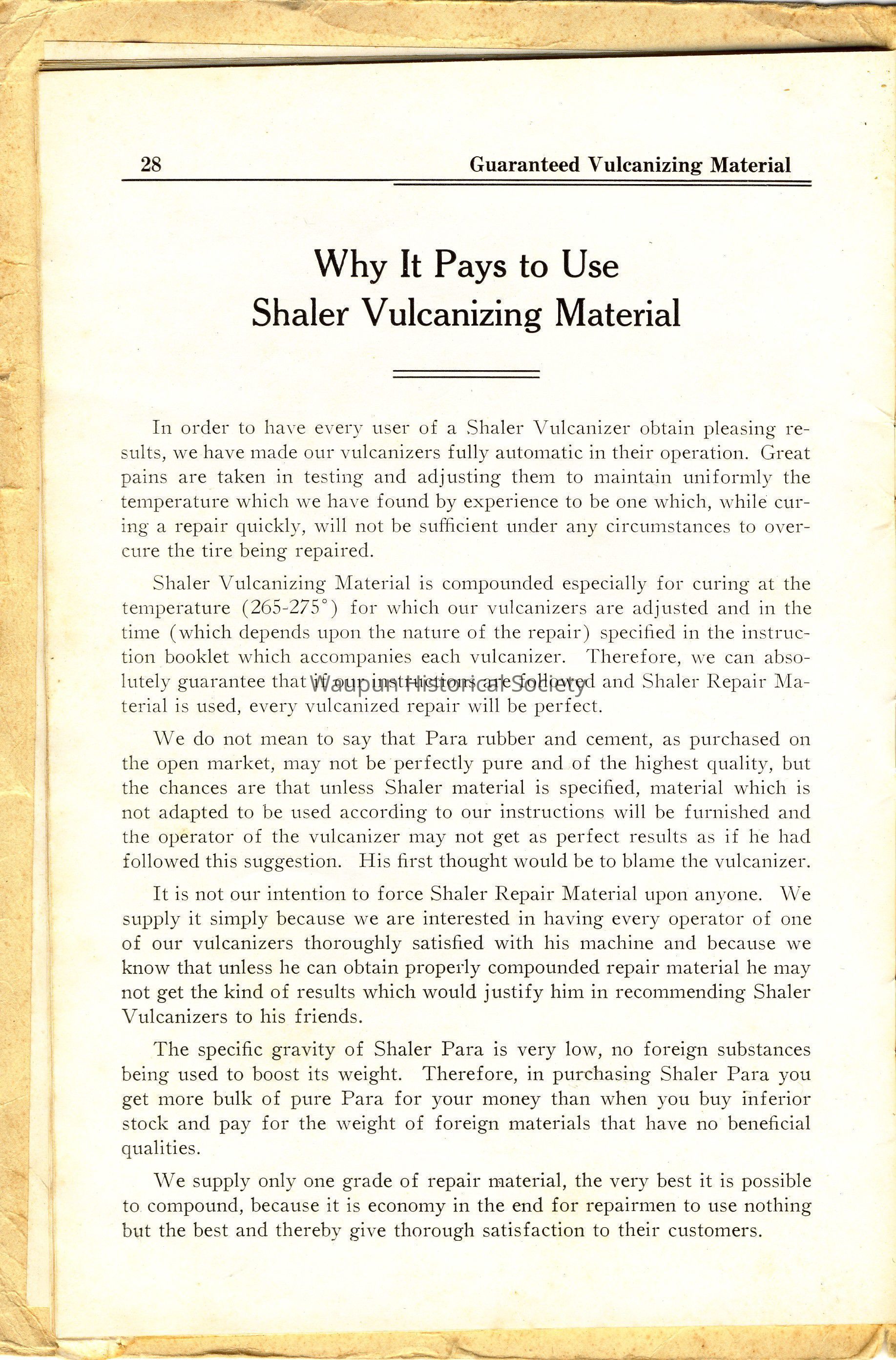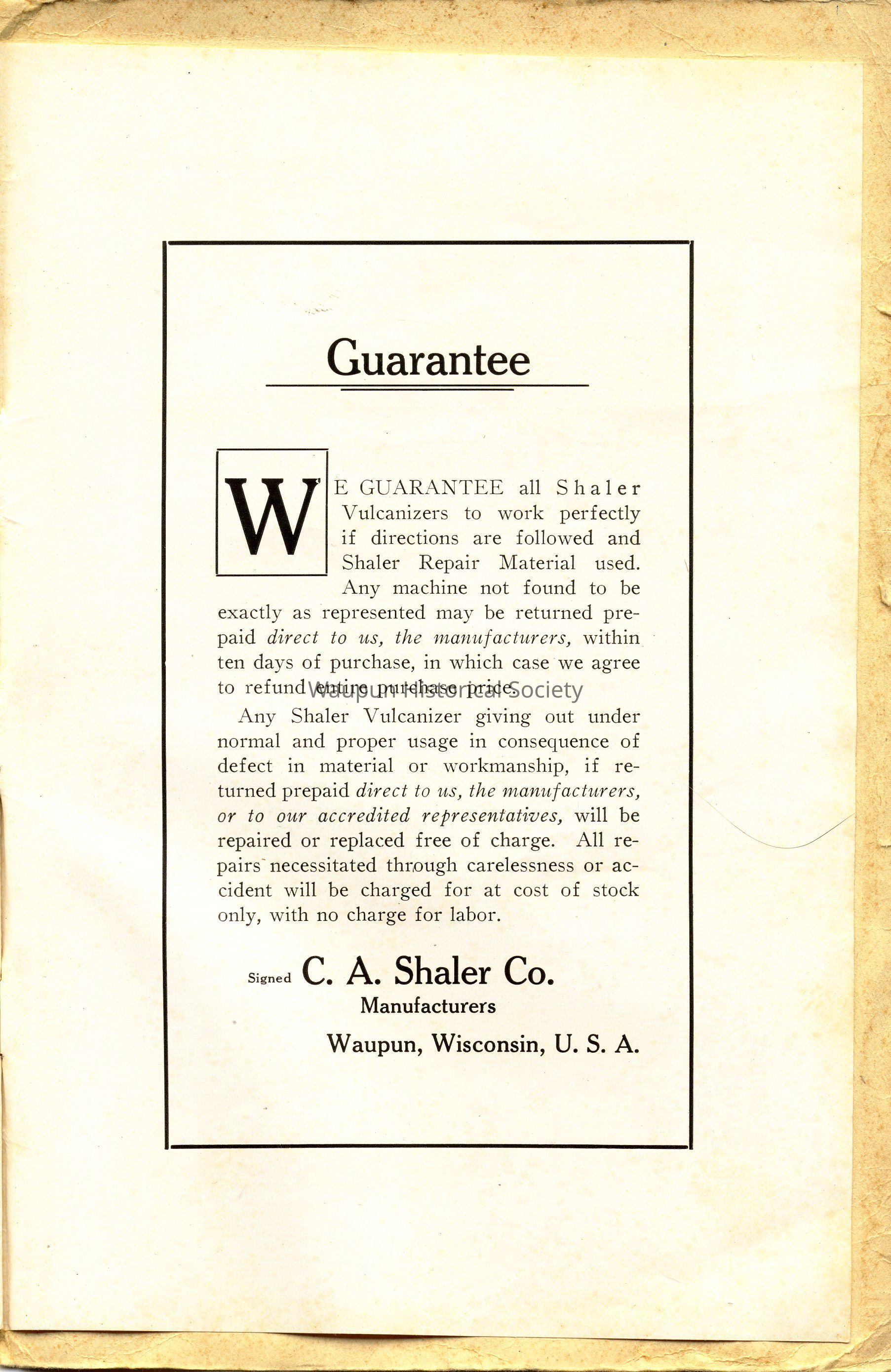 The purchaser of a Shaler Vulcanizer gets his money's worth in service and satisfaction because every Shaler Vulcanizer is made so that we can guarantee it to work perfectly in his hands.