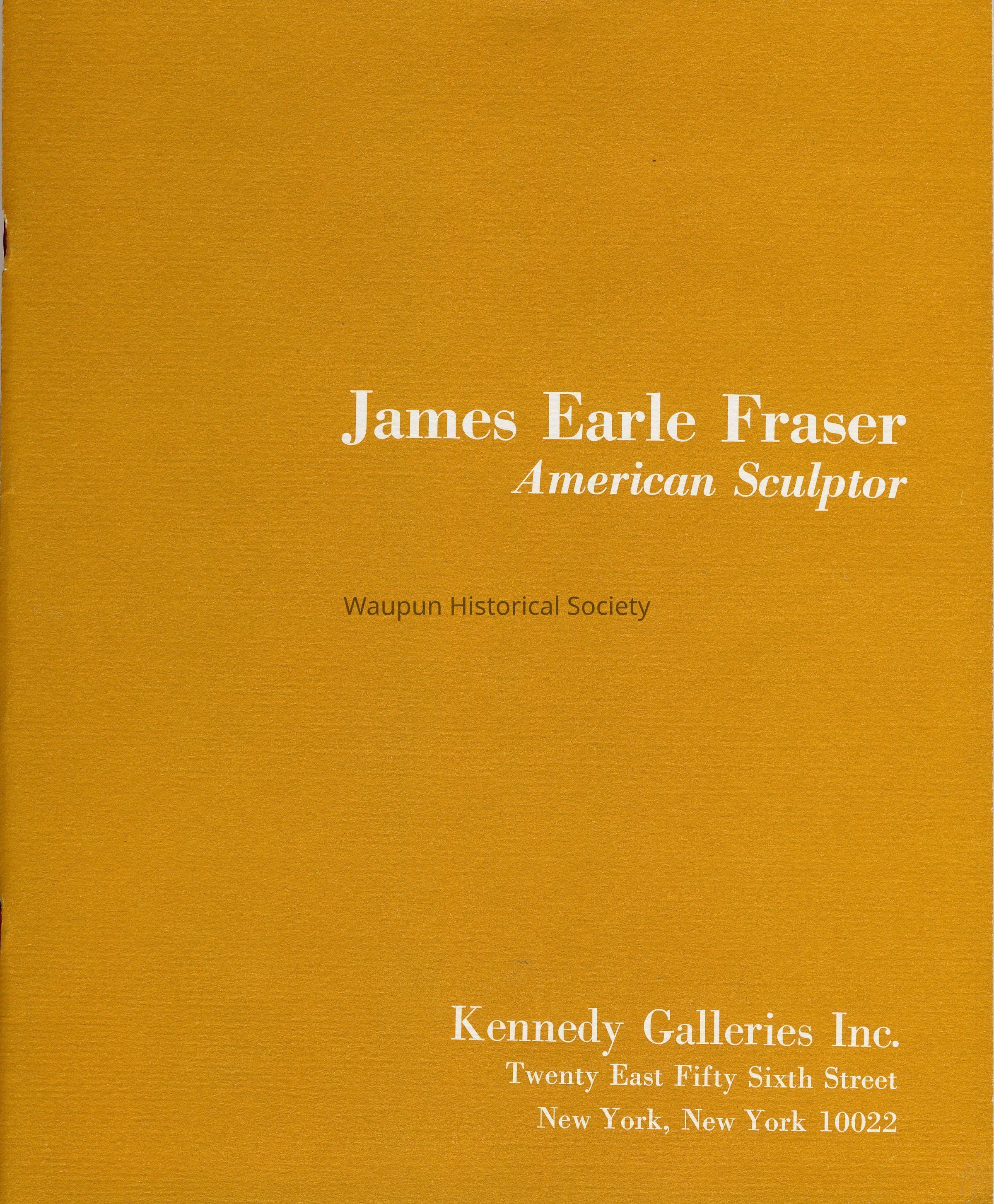 Gallery book for James Earle Fraser exhibition. This exhibition was held June 2 to July 3 1969 at the Kennedy Galleries, Inc., 20 East Sixth Street, New York, New York, 10022. We have two copies of this booklet.