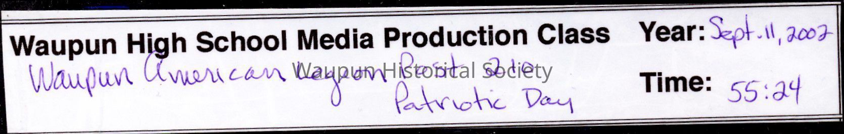 VHS tape of the Waupun American Legion Post 210 of Patriotic Day September 11, 2002