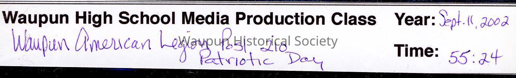 VHS tape of the Waupun American Legion Post 210 of Patriotic Day September 11, 2002