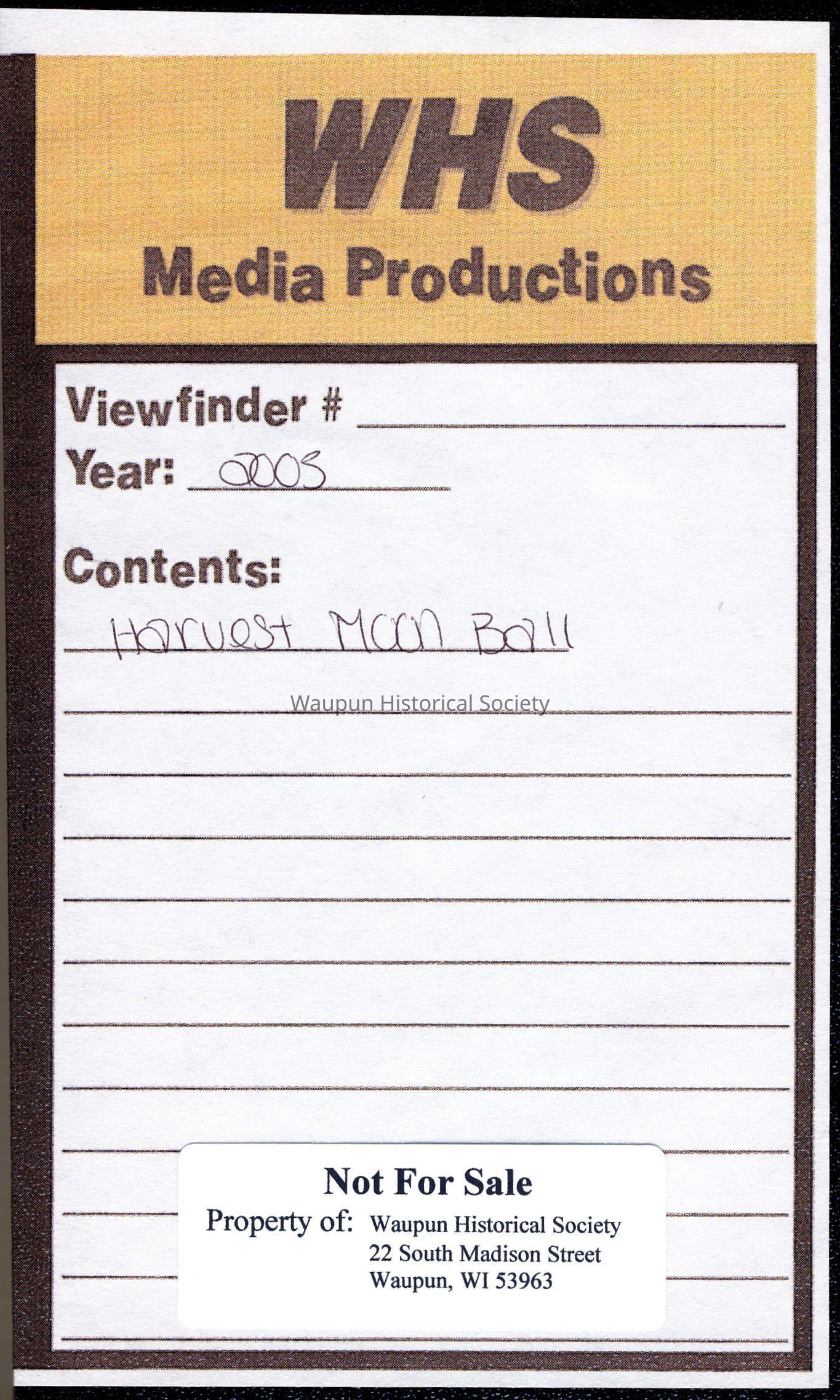 VHS Tape, WHS Media Productions, 2003 Waupun Harvest BallEntry/Object ID