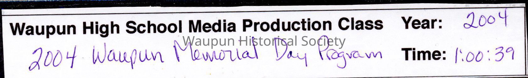 VHS Tape, WHS Media Productions, Memorial Day Program 2004Entry/Object ID