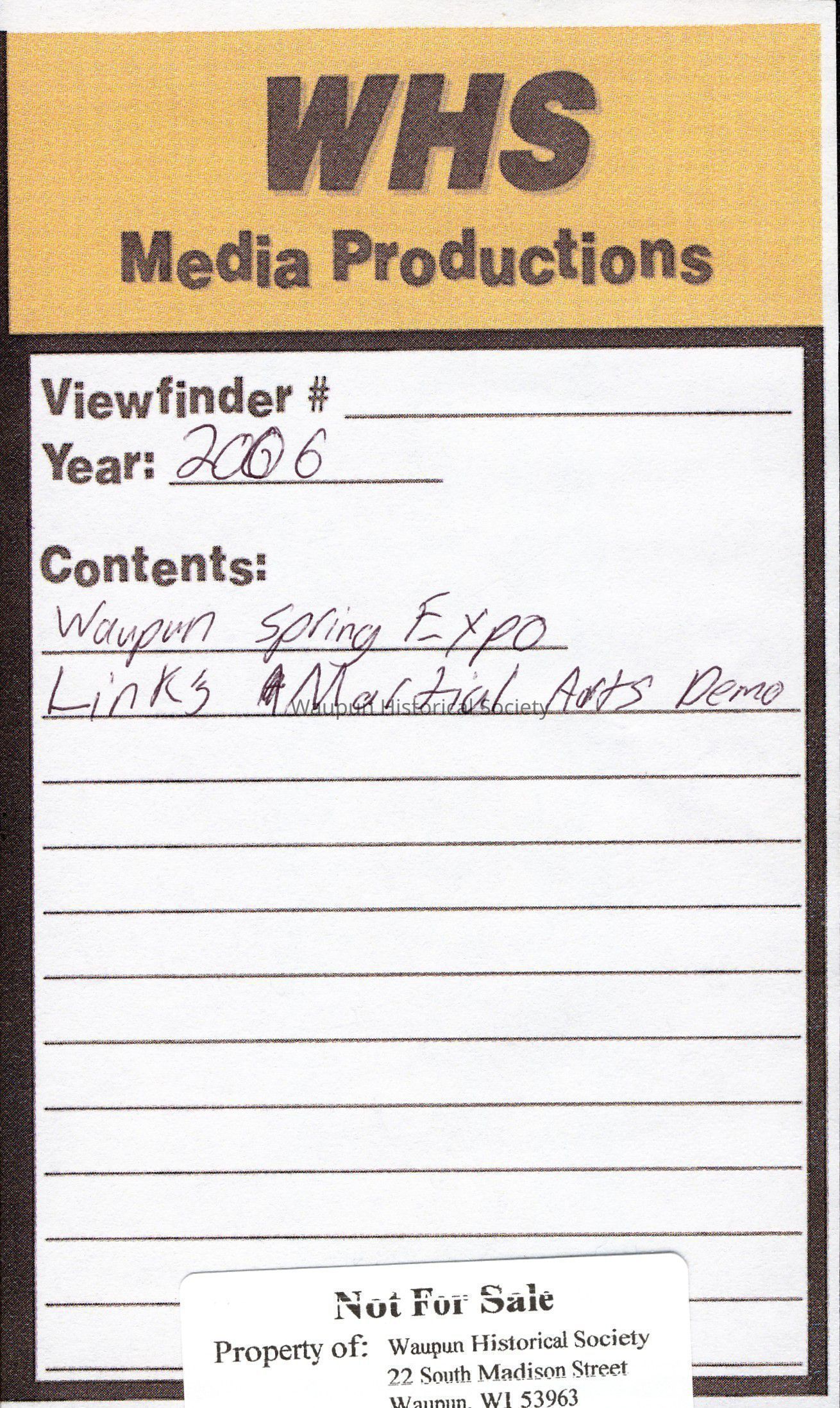 VHS Tape, WHS Media Productions, Spring Expo 2006, Link's Martial ArtsEntry/Object ID