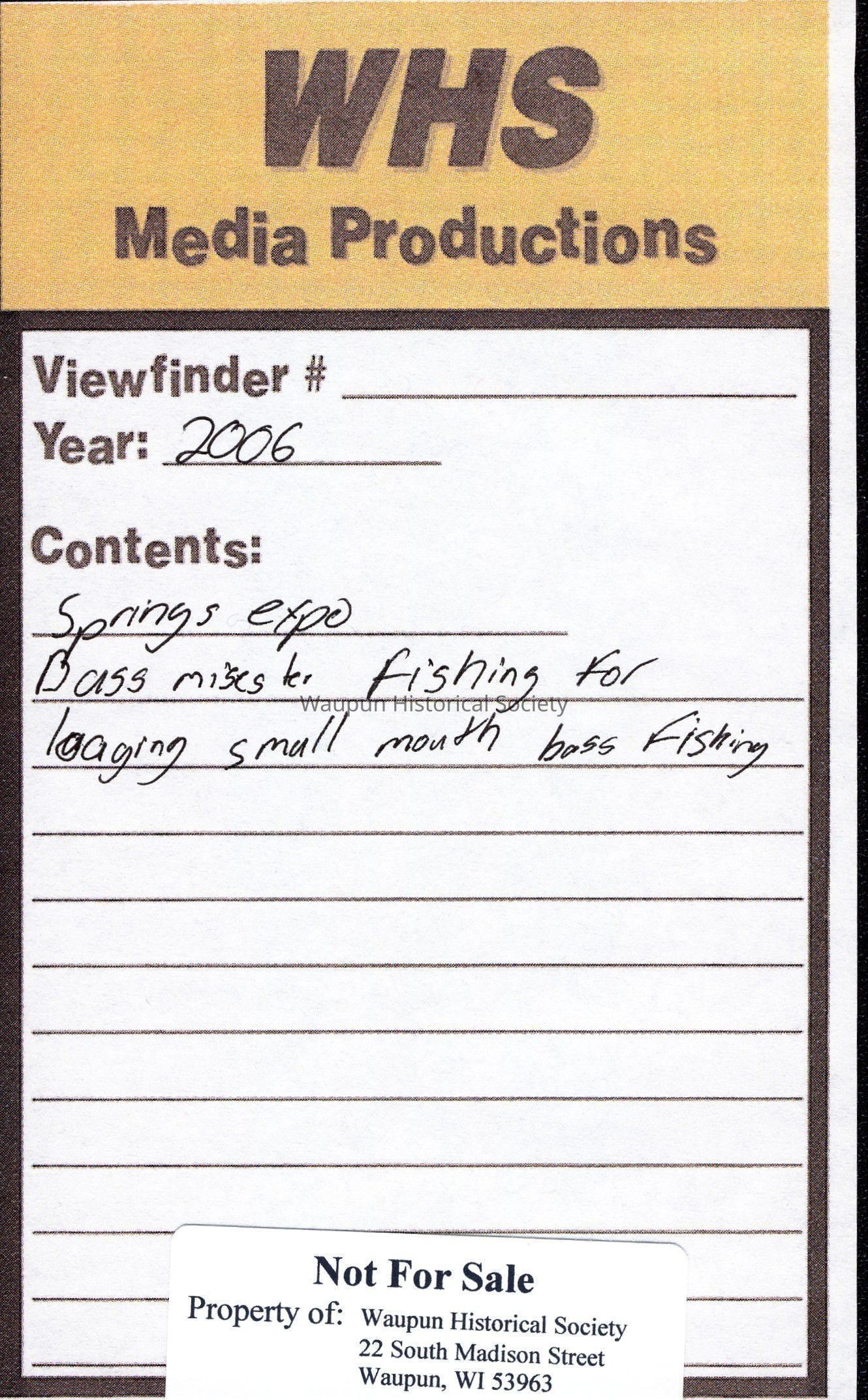 VHS Tape, WHS Media Productions, Spring Expo 2006, Bass FishingEntry/Object ID