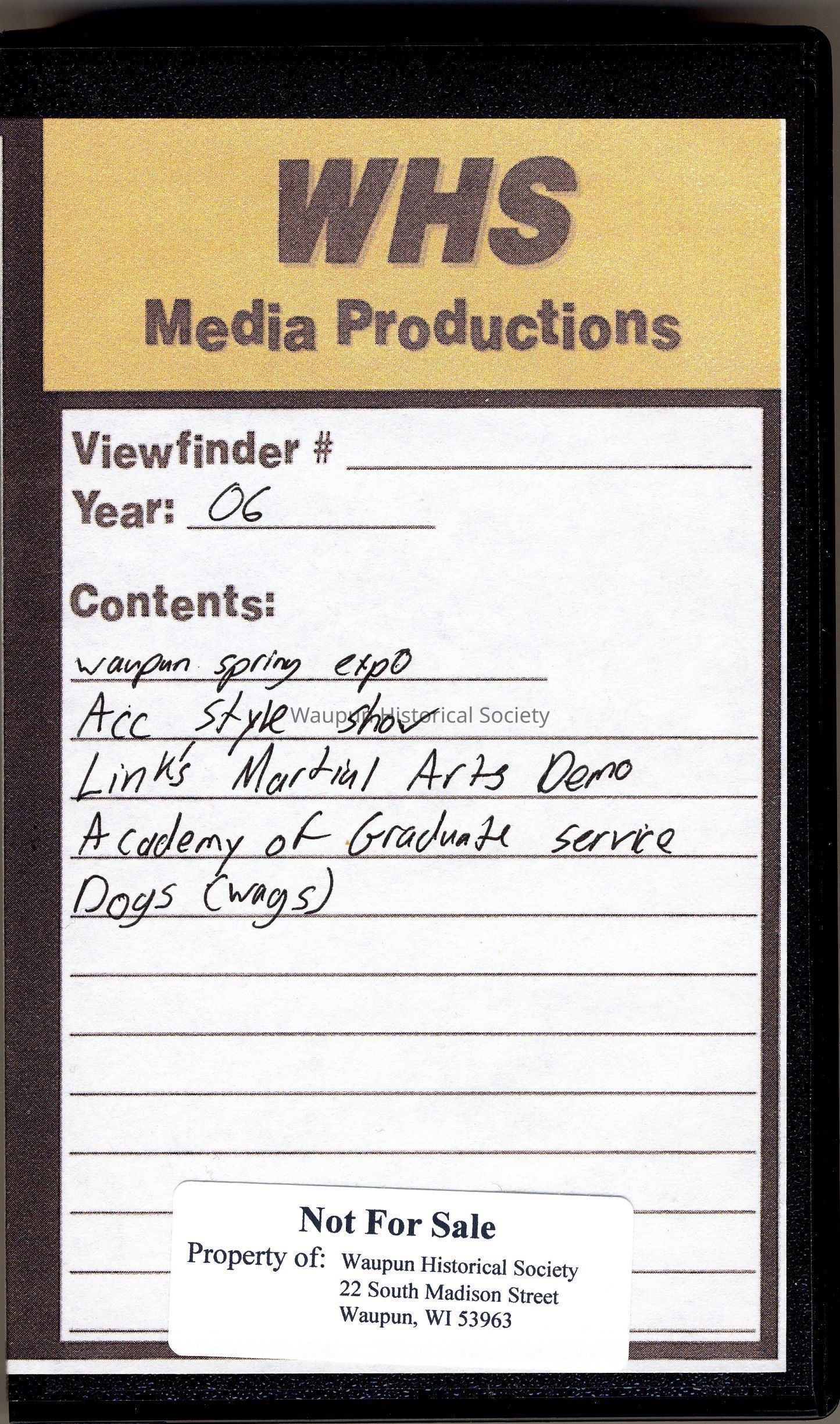 VHS Tape, WHS Media Productions, Spring Expo 2006, ACC Style Show, Link's Martial Arts, Graduate Services, Dogs (Wags)Entry/Object ID