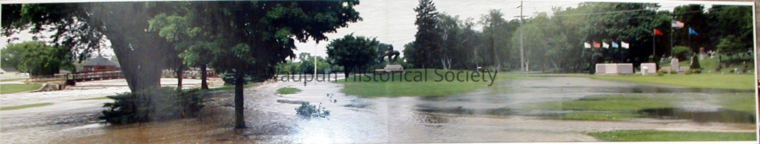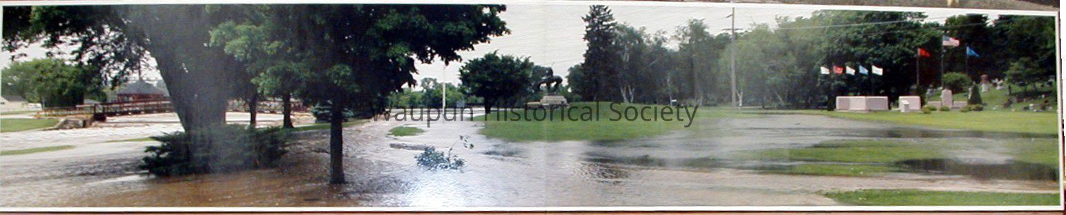 1 photo of Shaler Memorial Park and the End of the Trail during the flood of 2008. The photo was taken by Ken Freriks on June 9, 2008 at about 12:45 PM. It is a composite of 6 photos showing the extent of the flooding.Acquisition