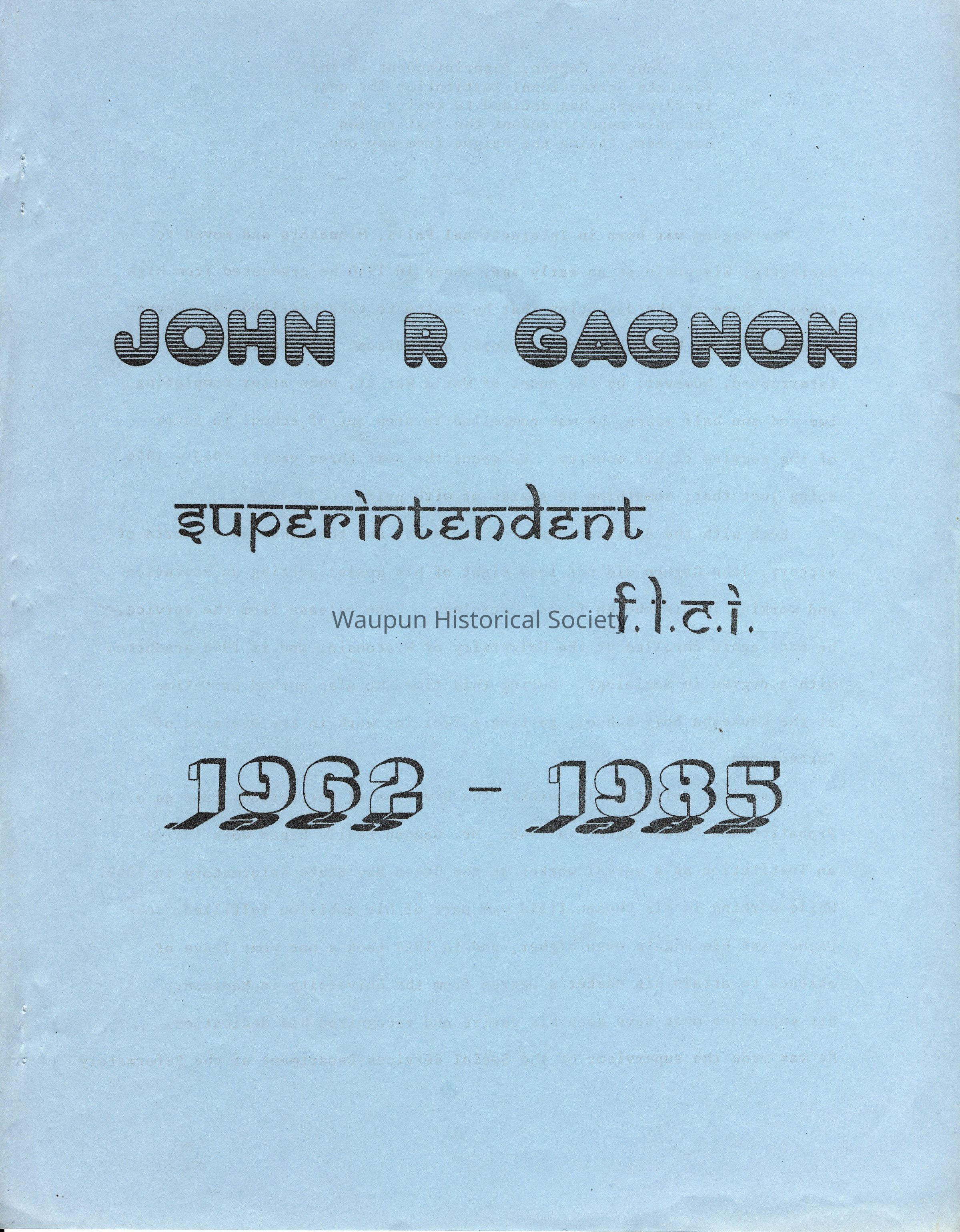 Booklet, John R Gagnon, Superintendent, Fox Lake CorrectionalEntry/Object ID