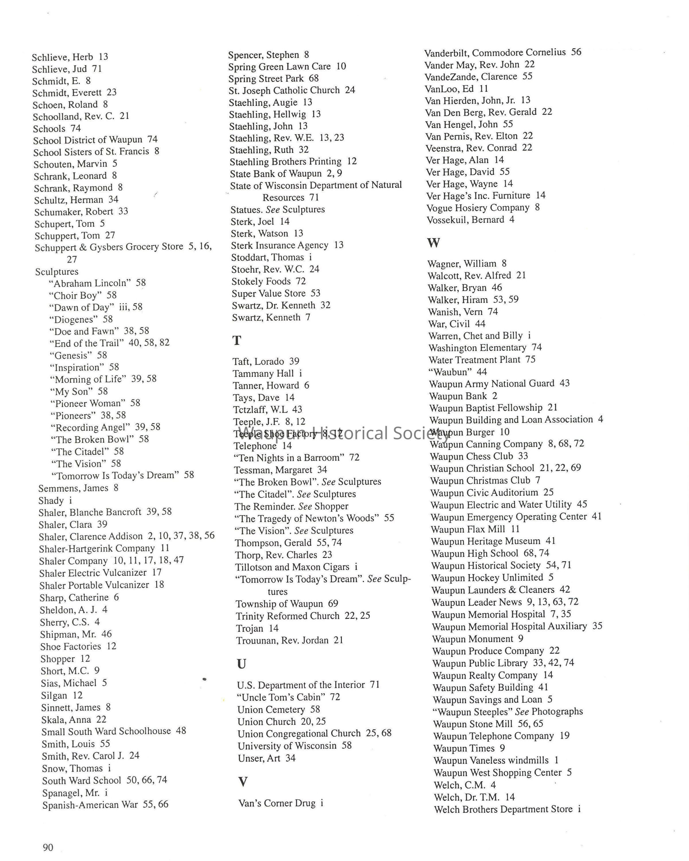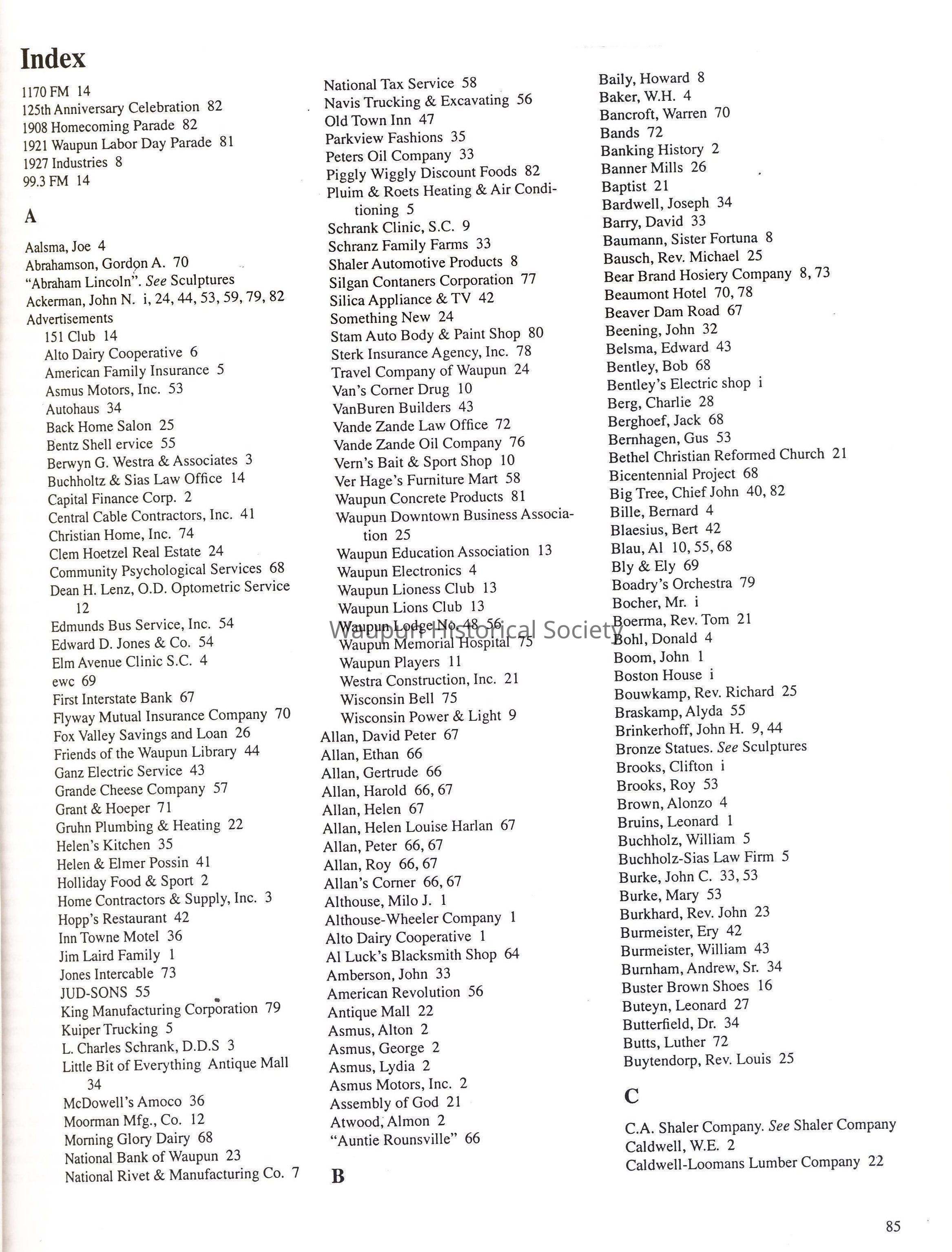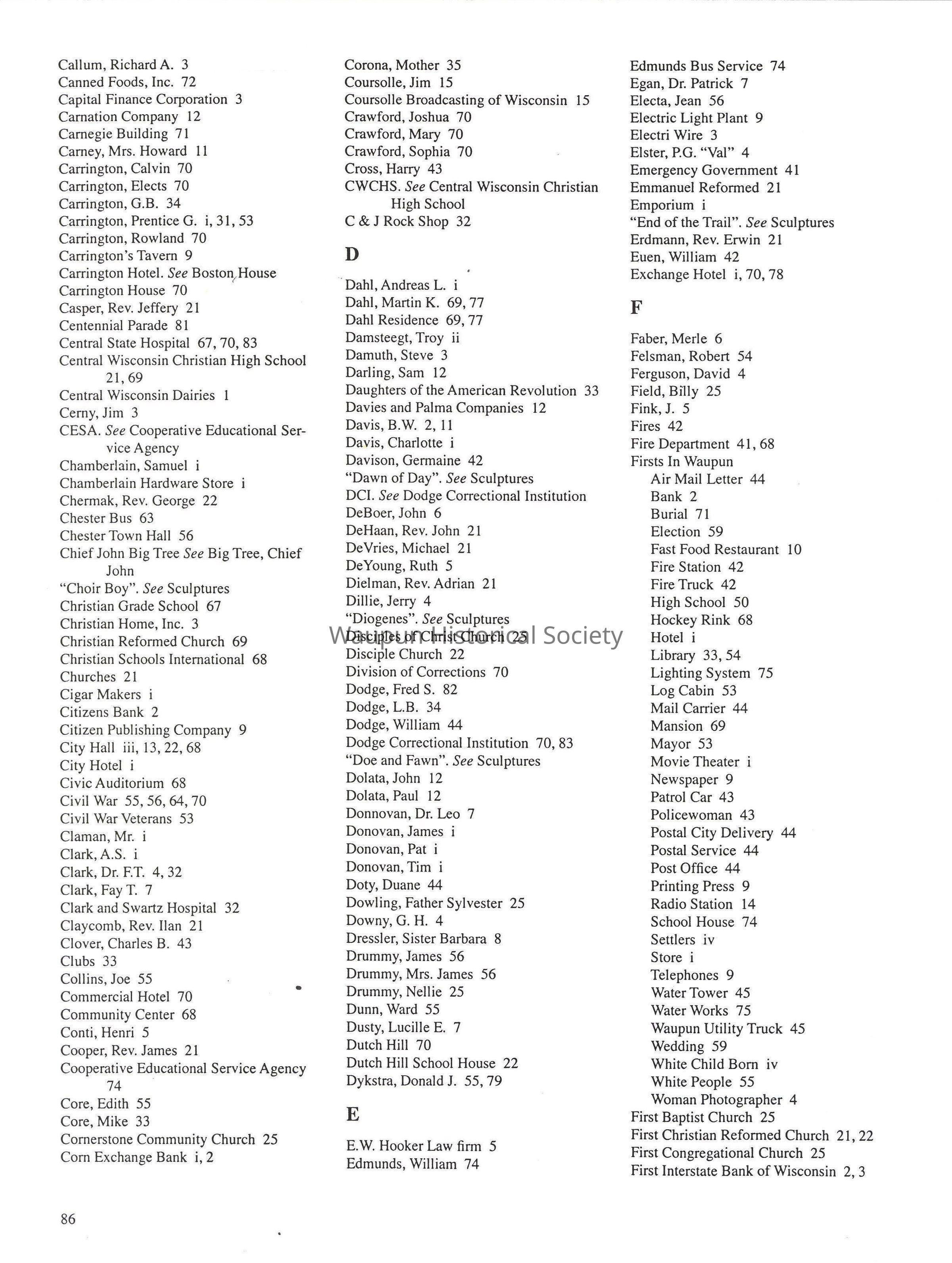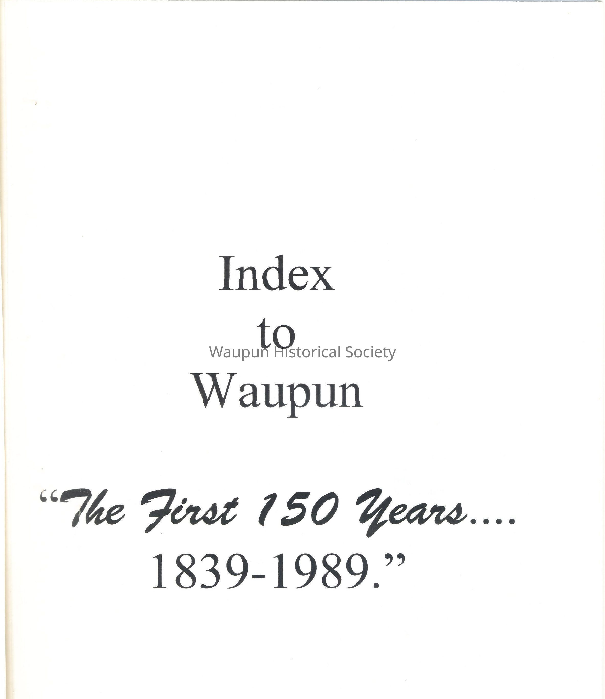 Index to Waupun "The First 150 Years. . . 1838 - 1989."Entry/Object ID