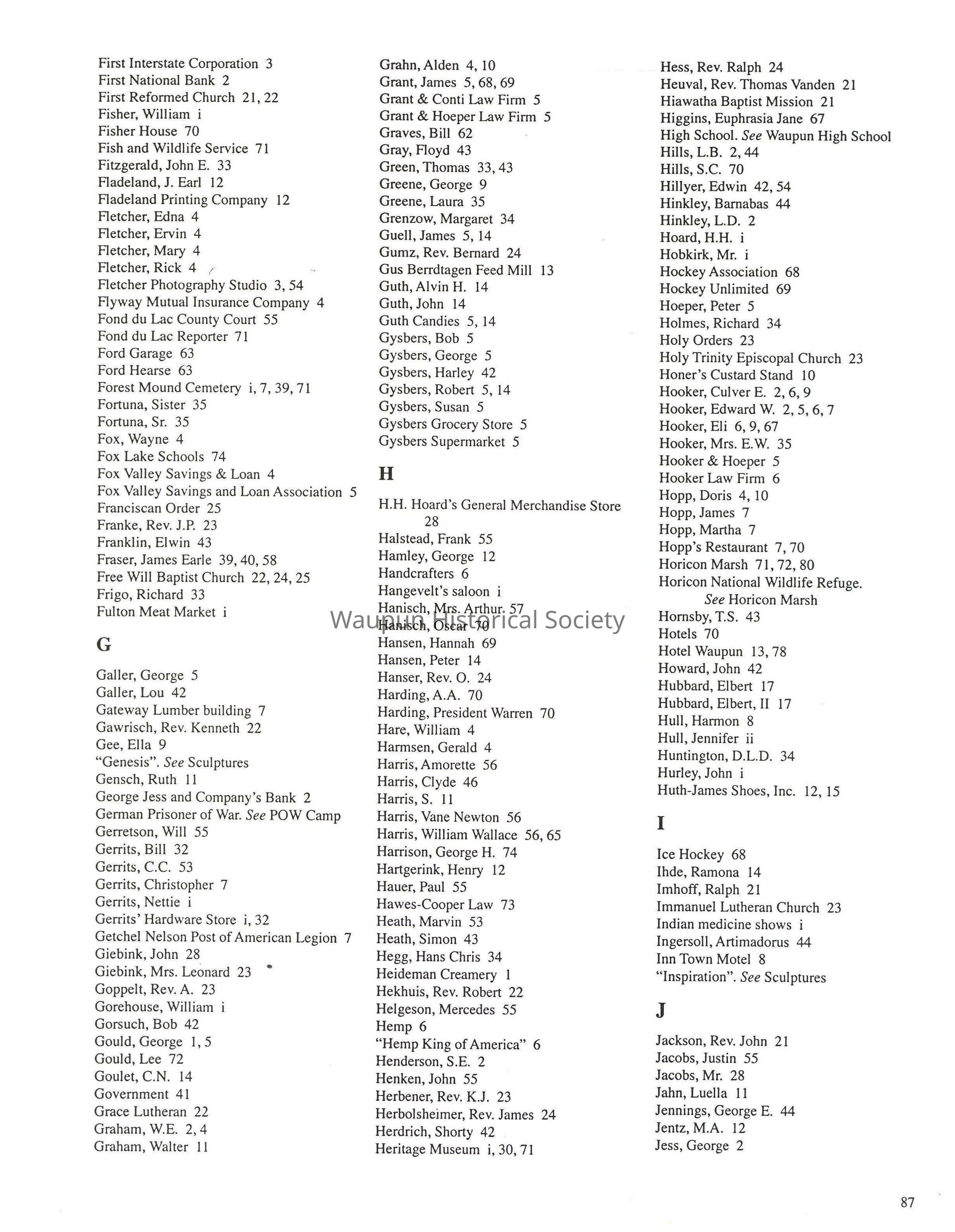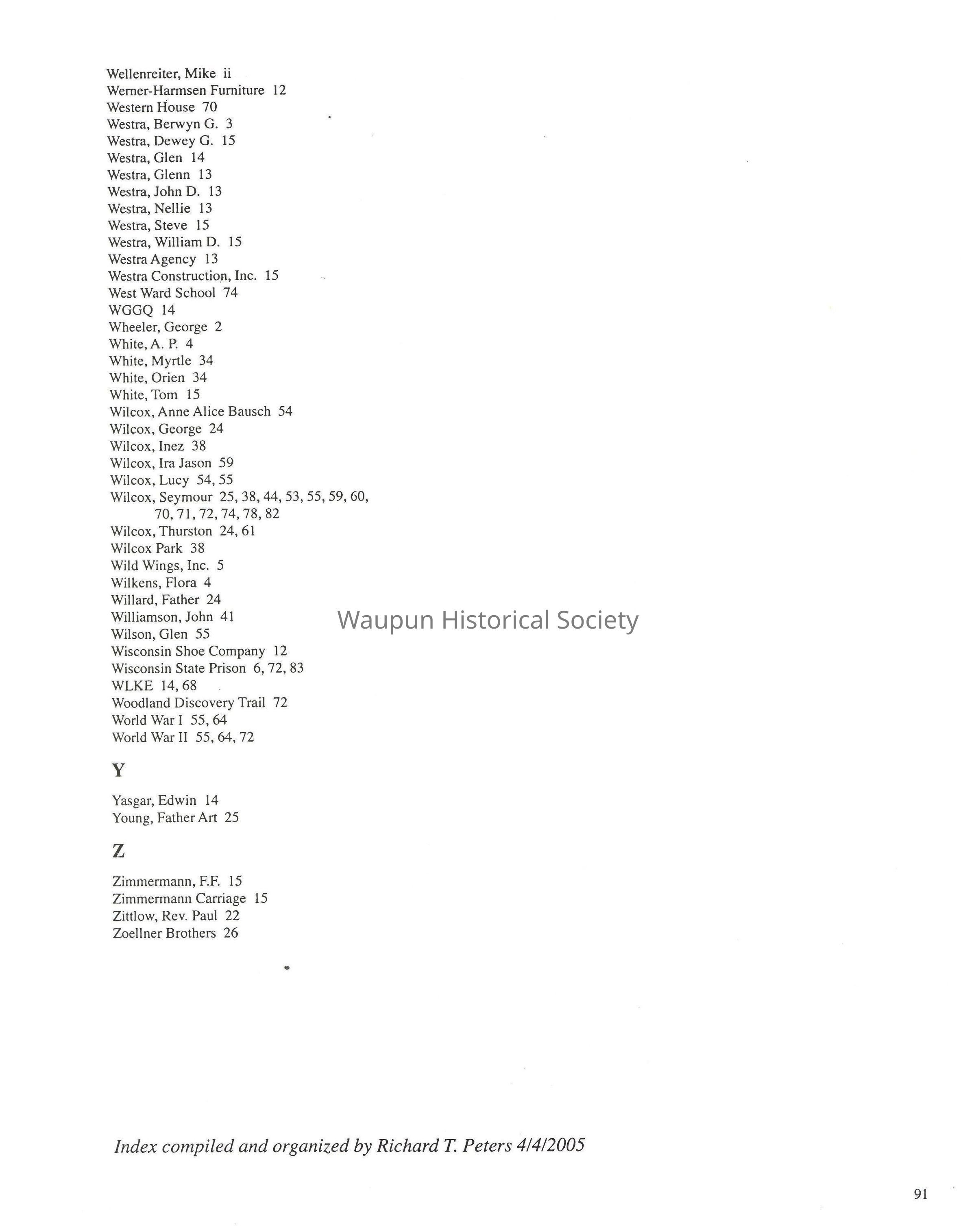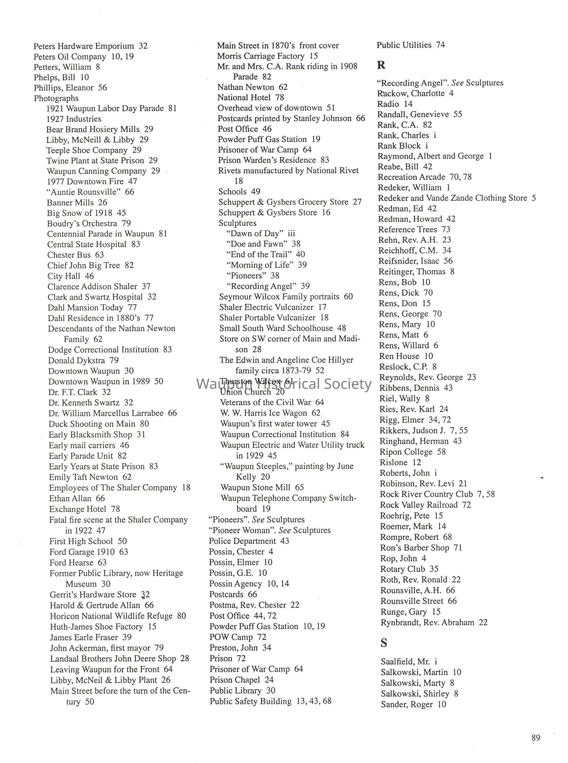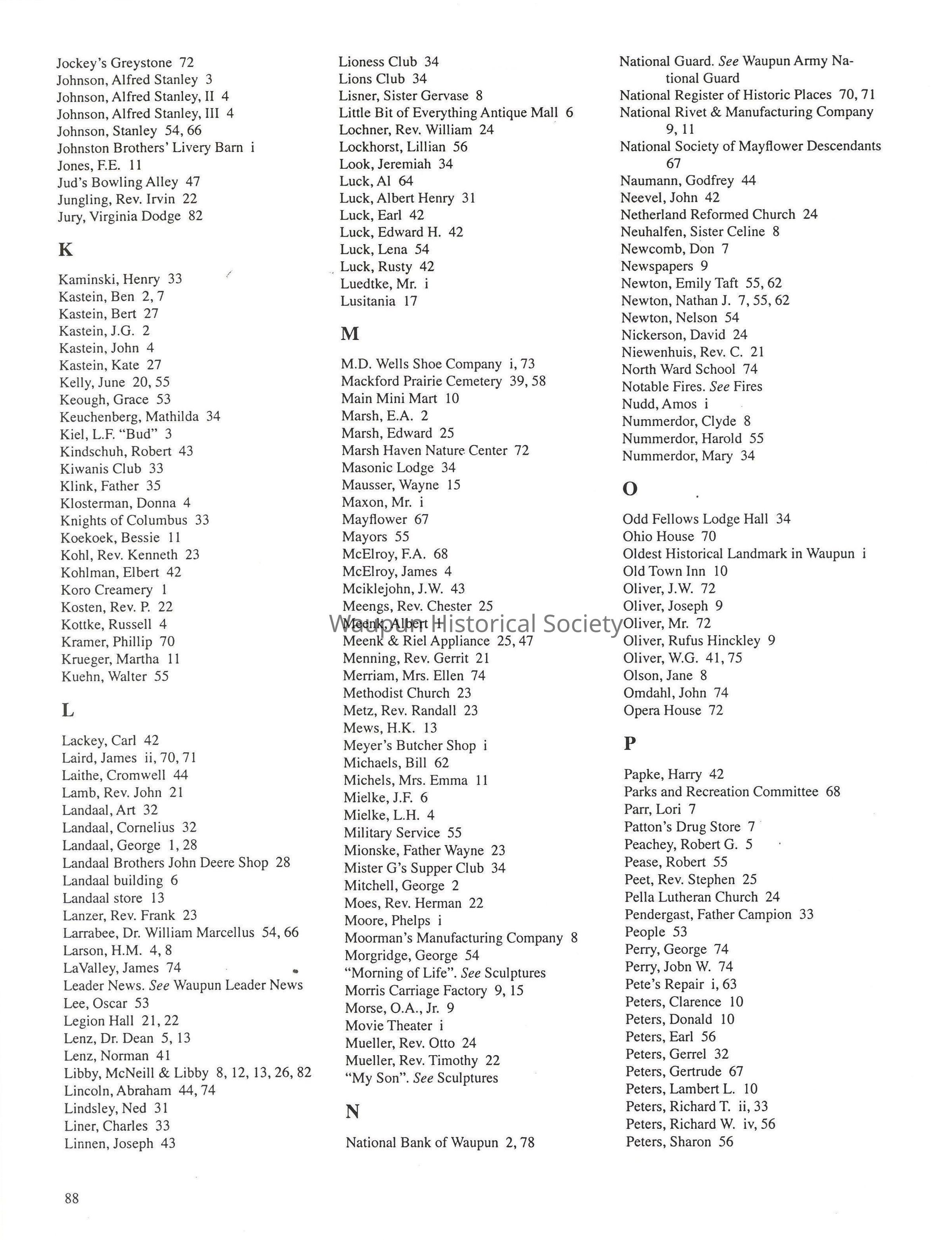 Index to Waupun "The First 150 Years. . . 1838 - 1989."Entry/Object ID