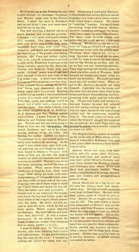 However brief and sketchy a history of the city this may be, it will necessarily include the names and mention of old settlers in the vicinity, both in Dodge and Fond du Lac Counties. More than fifty years have passed, numerous names that should be mentioned do not occur to me, and many events that would he of general and personal interest have been forgotten. In those remembered, the exact coloring has, due to such lapse of time and a busy life, become blurred, and it is beyond my powers to so bring them before you, as to cause you to realize the place and surroundings. I can only say that, so far as I am able, the truth shall be told, though not possible to tell it all.