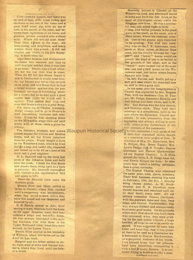 Extended Description: Newspaper article from the Waupun Leader News of 190l placed in a cardboard like folder which was from the Waupun Public Library. This was dated Friday, December 13, 1901. **There is another copy of this newspaper article in a black leather bound book labeled, "Cash Book", with F. Ford, Waupun, Wis. hand written inside page. Will indicate this as a duplicate with same object ID for computer information. This book was found November 17, 2015 in the Waupun Heritage Museum.