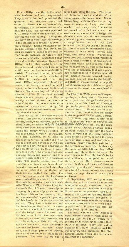 Copy of newspaper article taken from The Waupun Leader News of Friday, December 13, 1901.