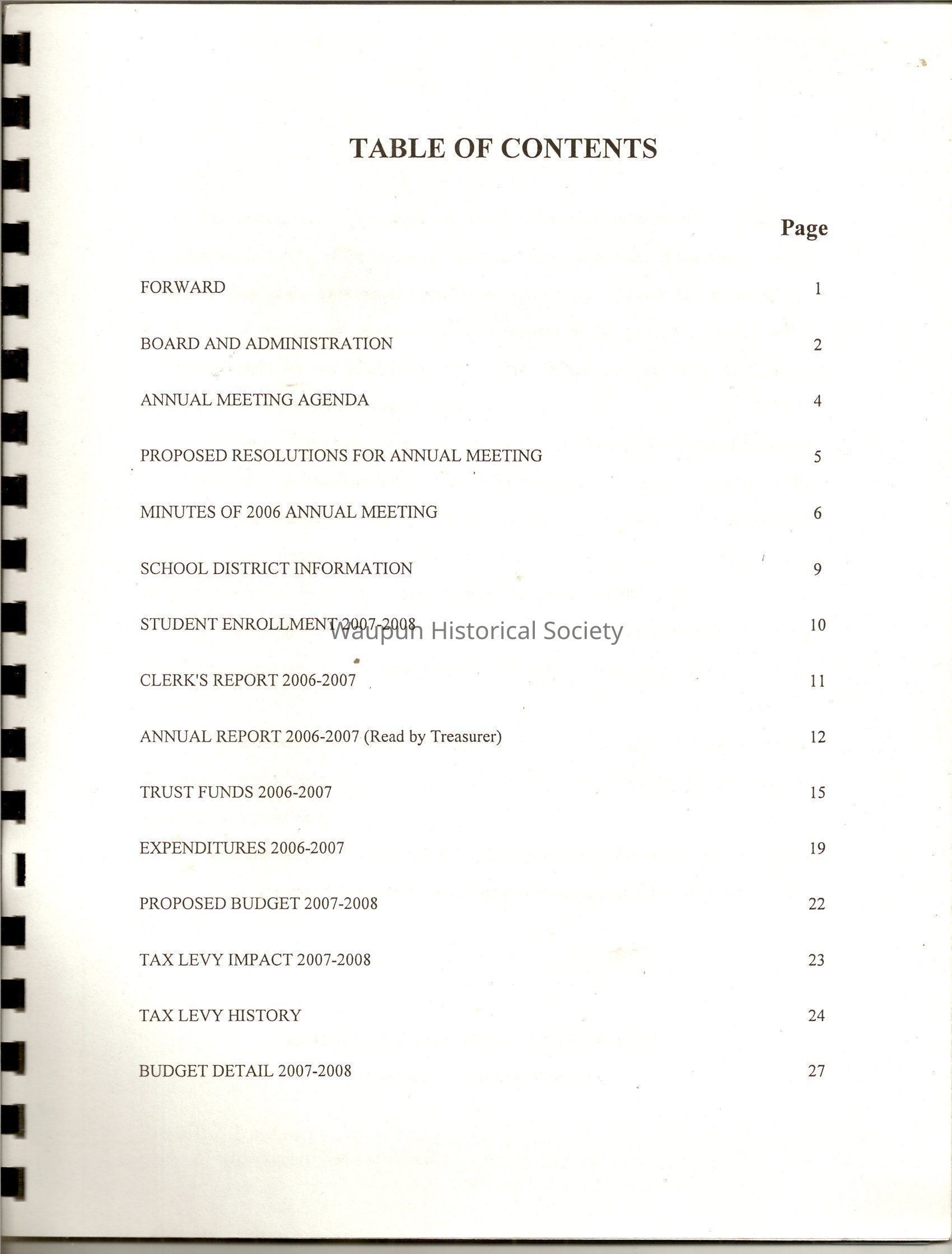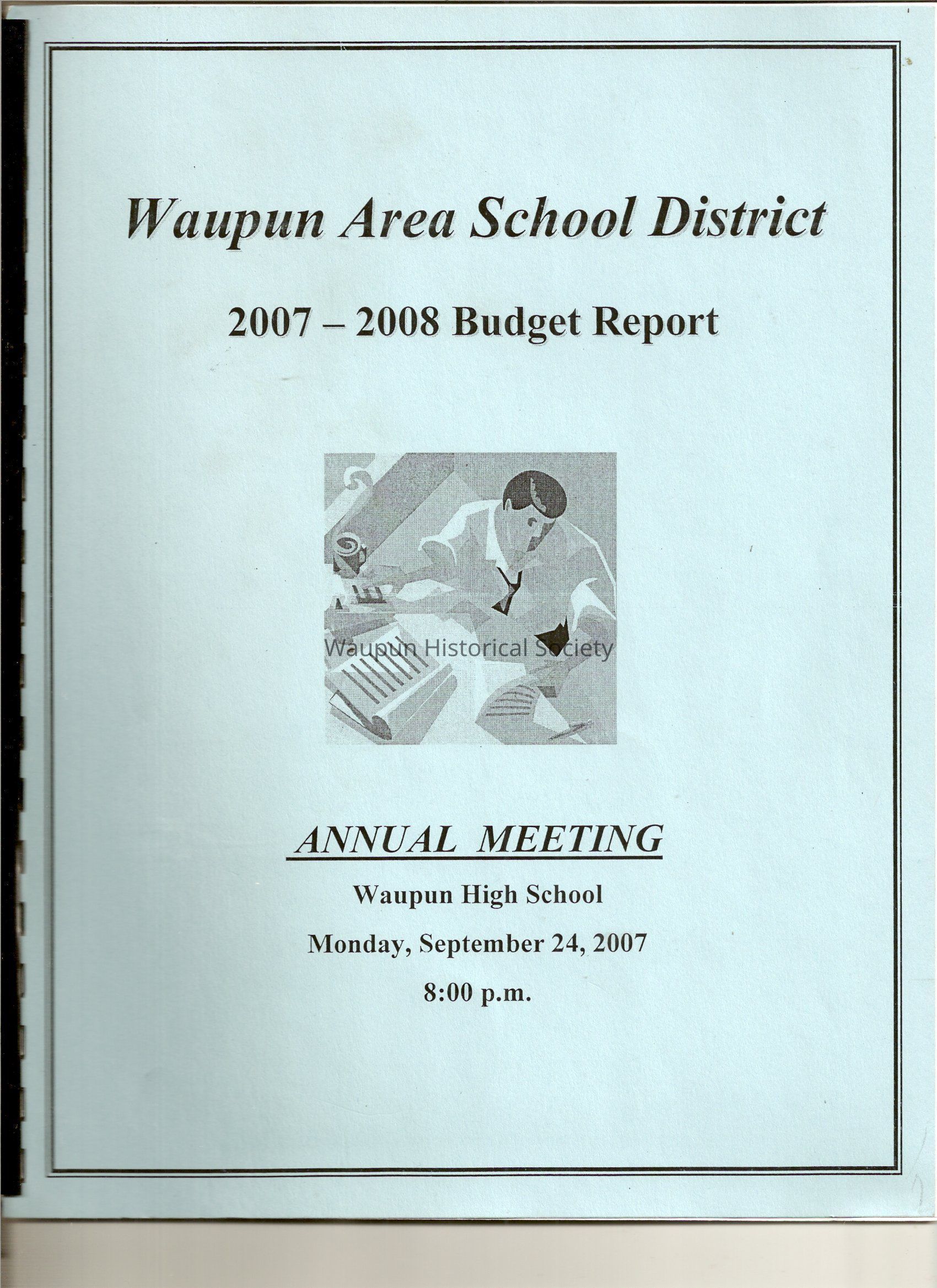 A Booklet of School District of Waupun annual Meeting of Waupun High School 2007-2008 Budget Reports.Acquisition