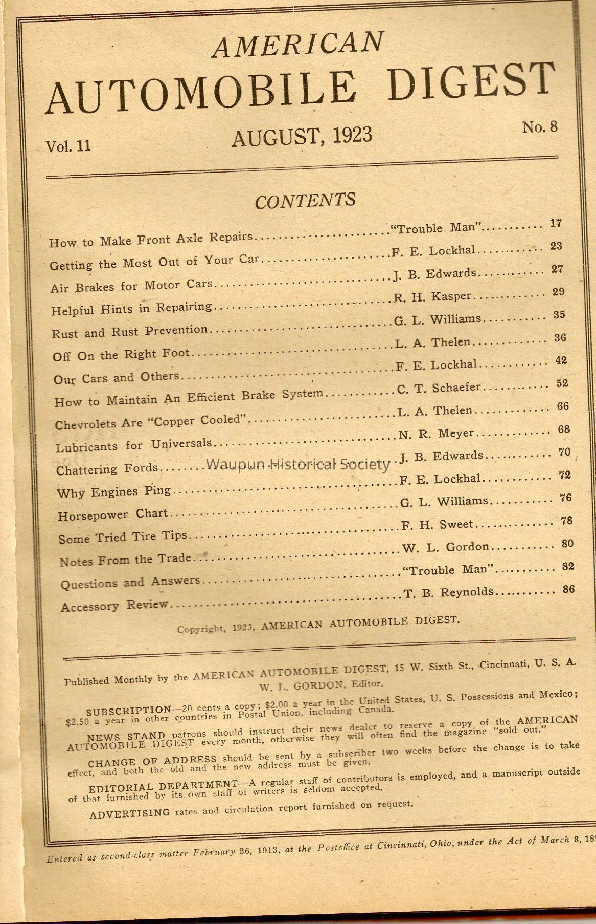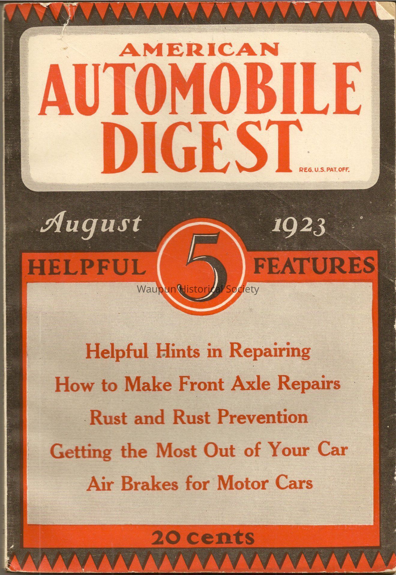 Shaler, A Booklet of American Automobile Digest with helpful Hints in repairing and how to make front Axle repairs Prevention rust and geting the most out of your car and the air brakes for motor cars.Acquisition