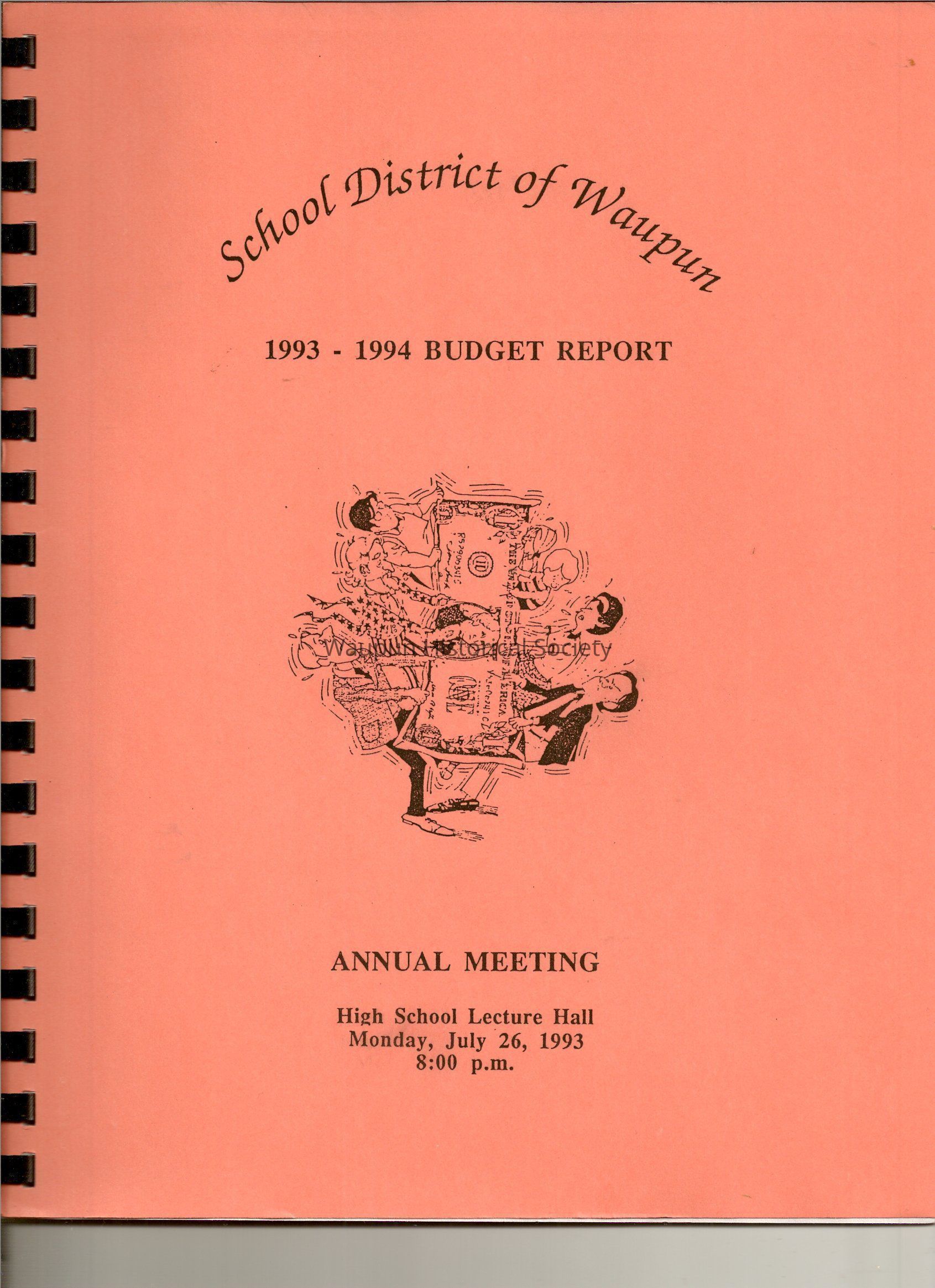 A Booklet of the school District of Waupun annual meeting of Waupun High School budget report of 1993 to 1994Acquisition
