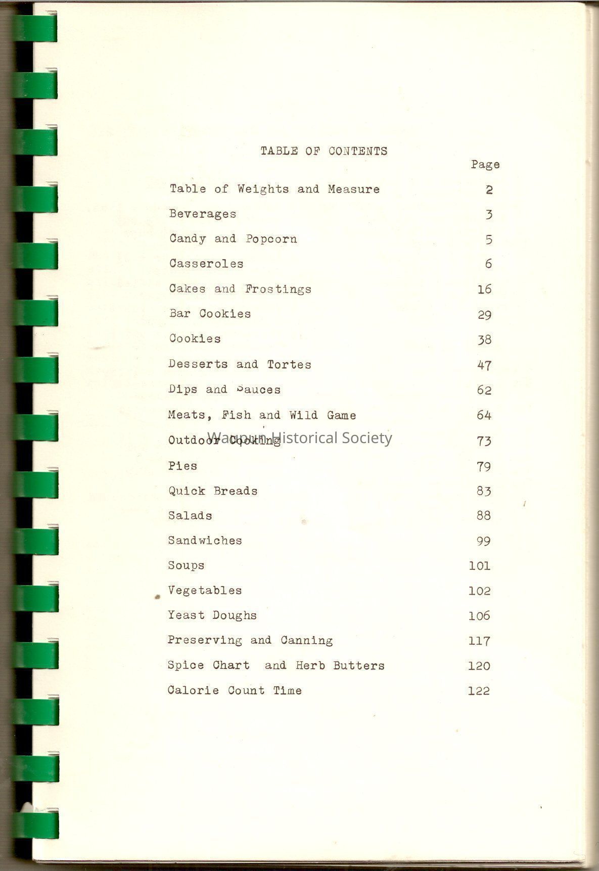 A Cook Book of recipes and table of weights and measurments and calories counting by the Pella Lutheran Church of Waupun Wis. of 1963.Acquisition