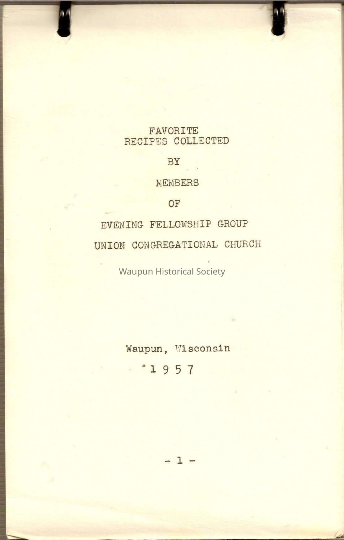 A Cook Book With Favorite Recipes Collected By Members Of Evening Fellowship Group Of Union Congregational Church Of Waupun Wis. Of 1957.Acquisition
