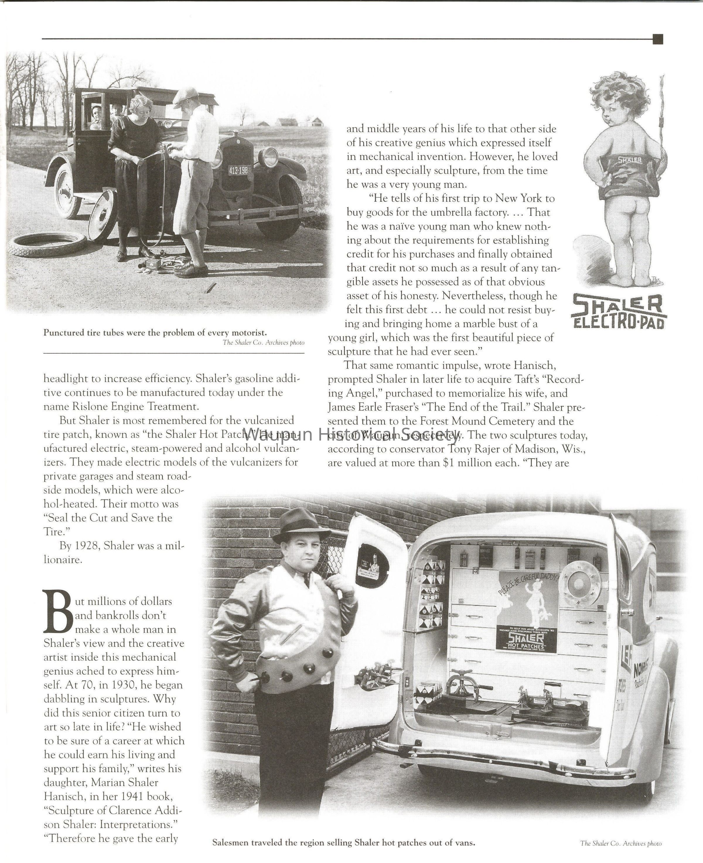 Clarence Addison Shaler was a wealthy industrialist and inventor who created the automobile vulcanized tire patch in his factory in Waupun, Wis.