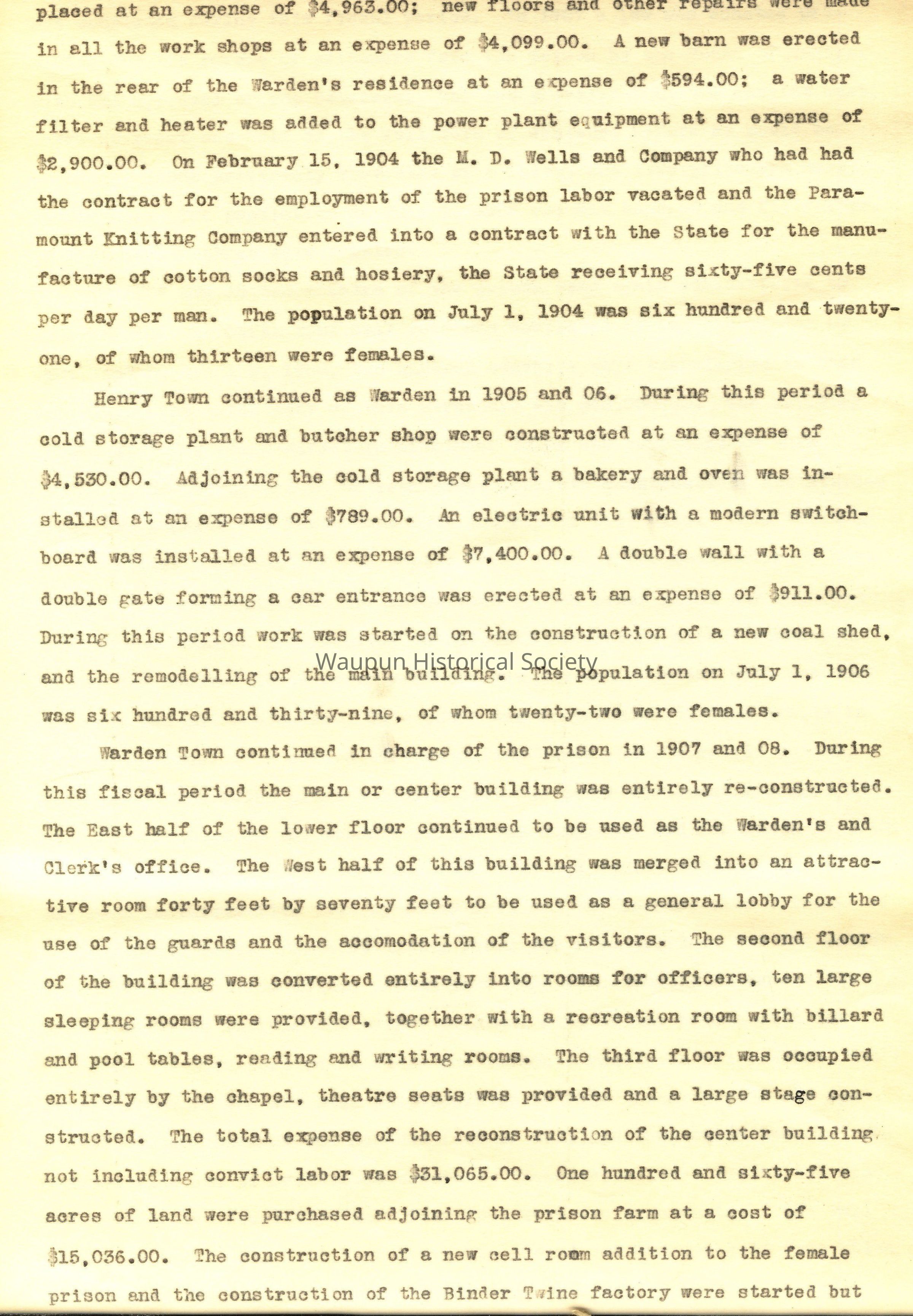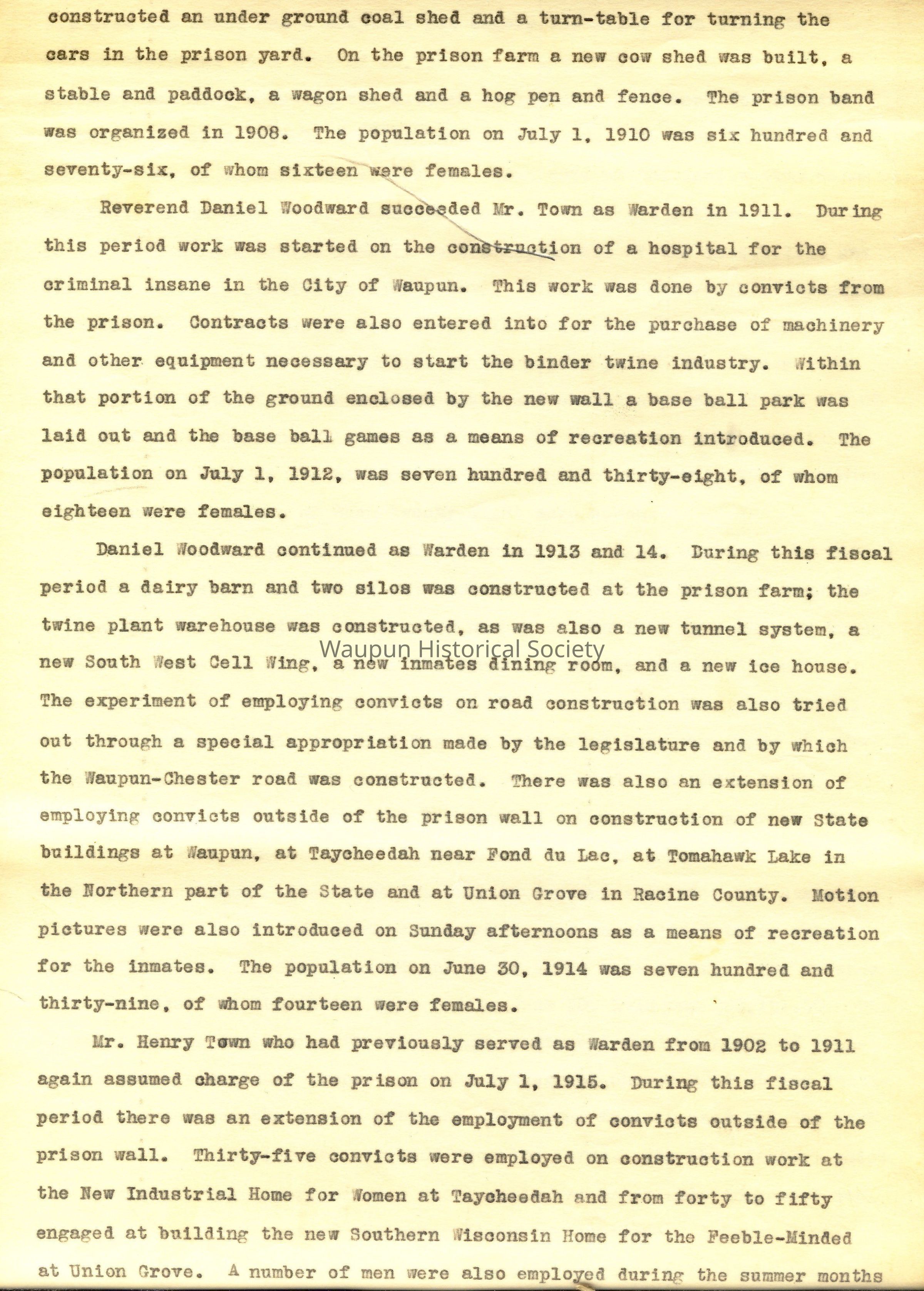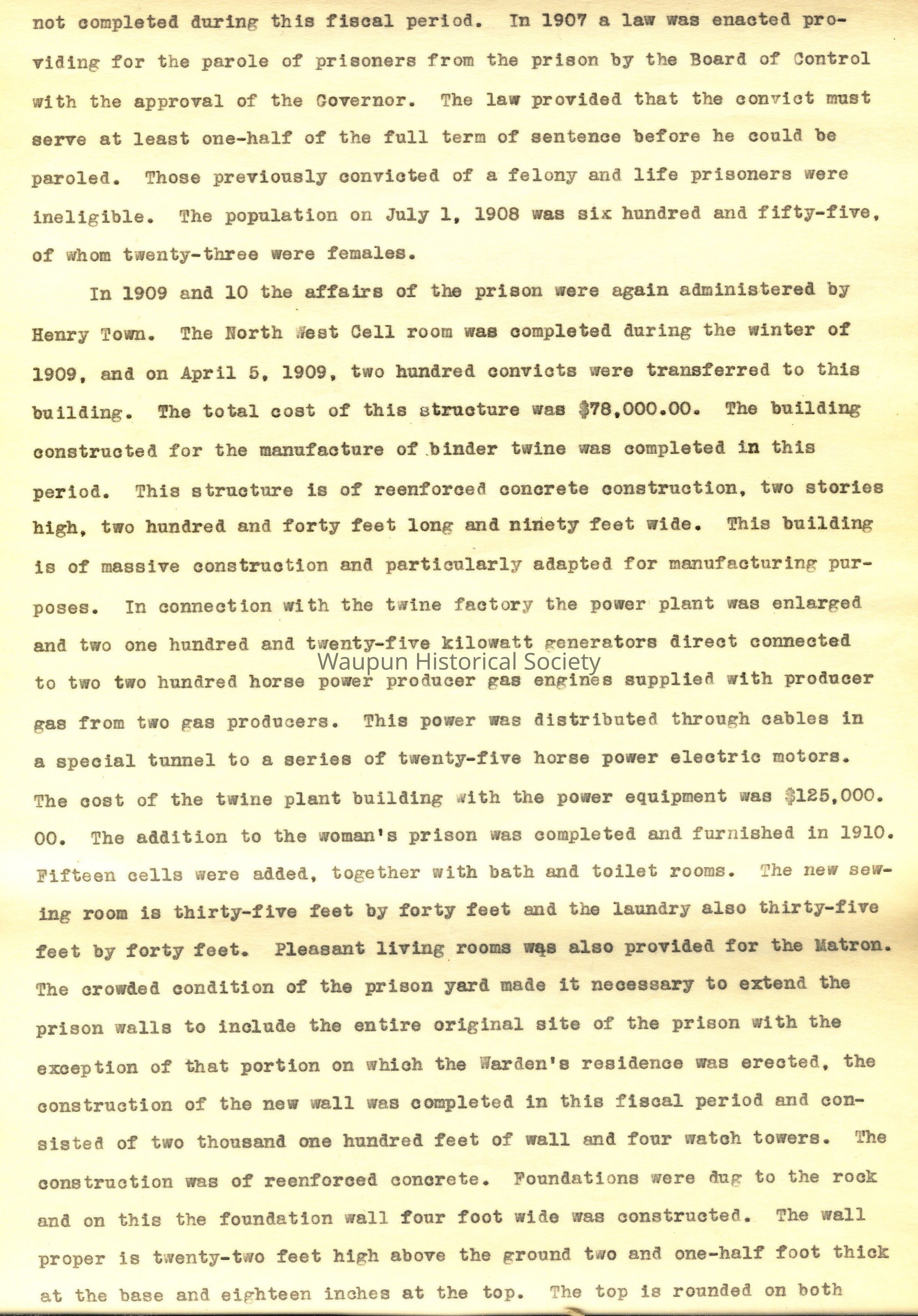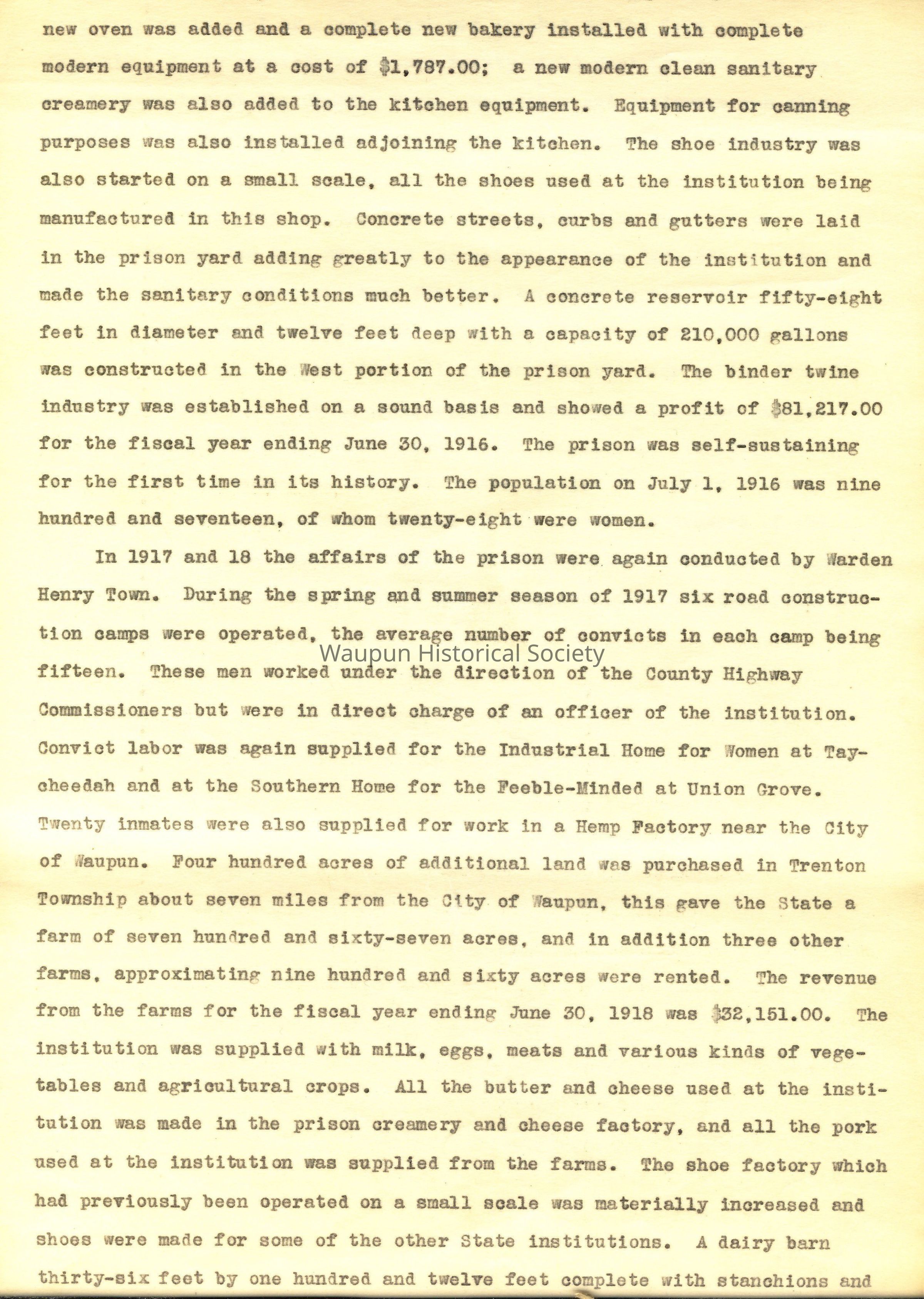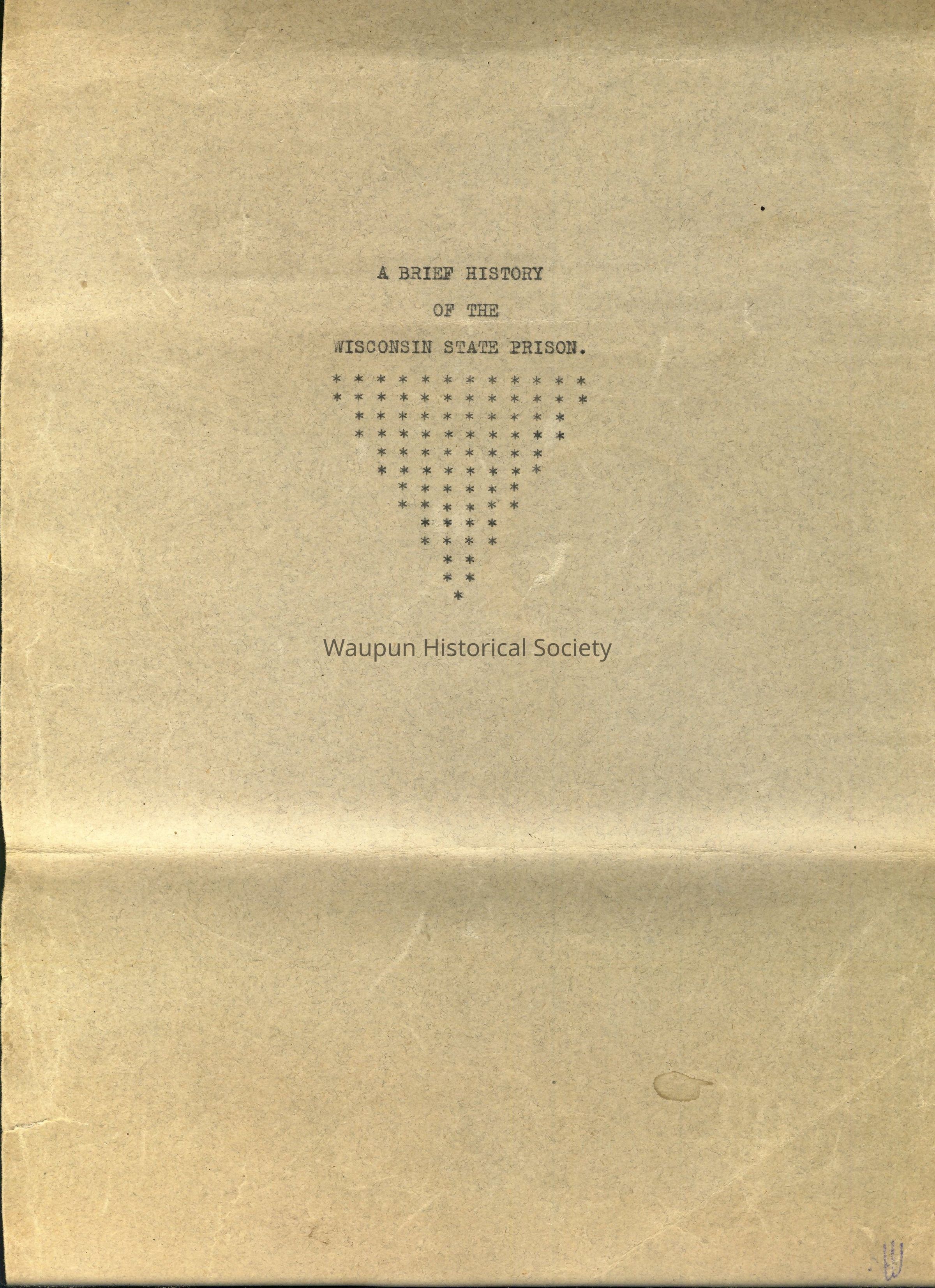 8"x14" paper bound booklet - A Brief History of The Wisconsin State Prison. Not sure of the date when this was composed or by whom. First date was1851, and last date was June 30, 1918.