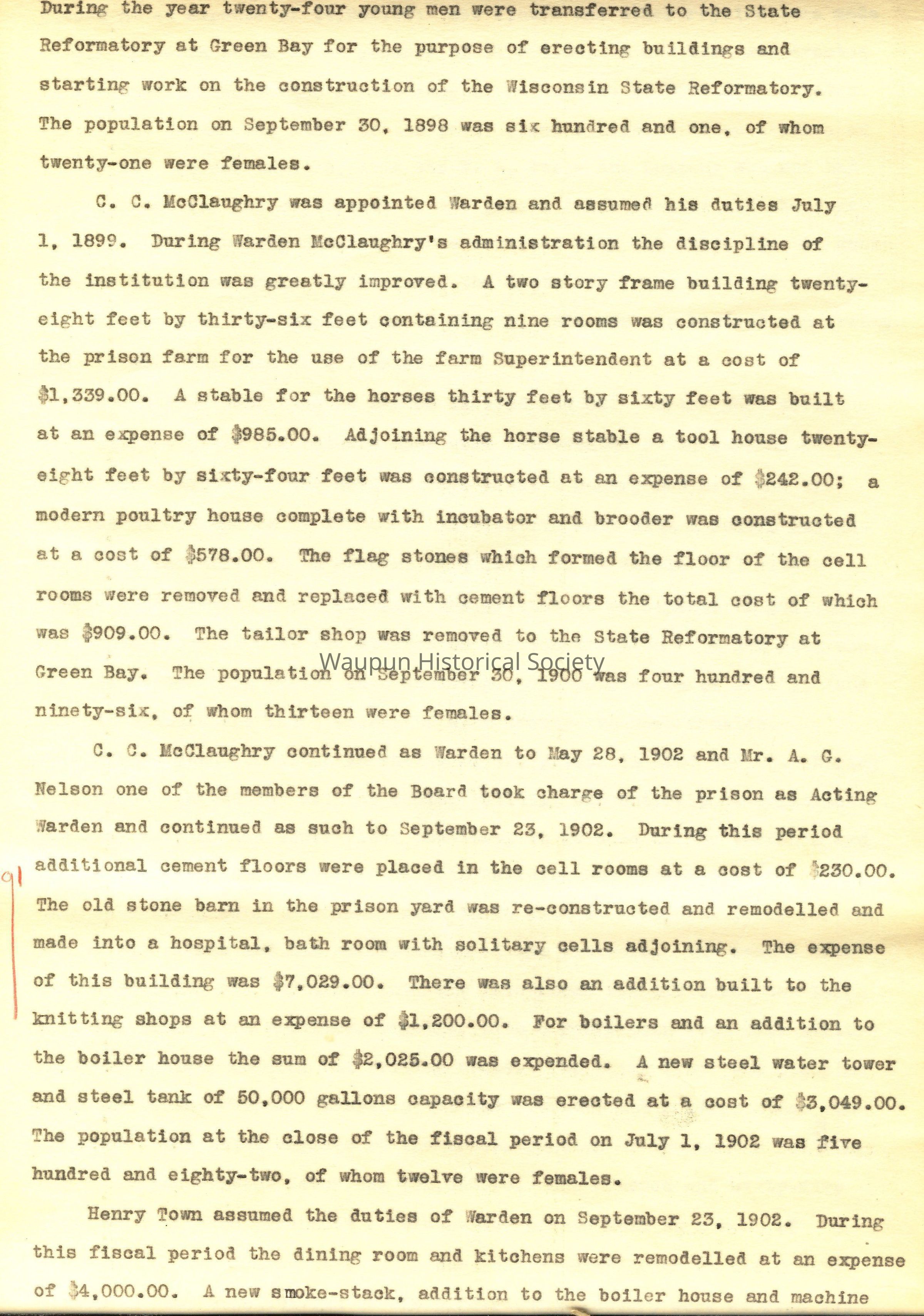 A BRIEF HISTORY OF THE WISCONSIN STATE PRISON