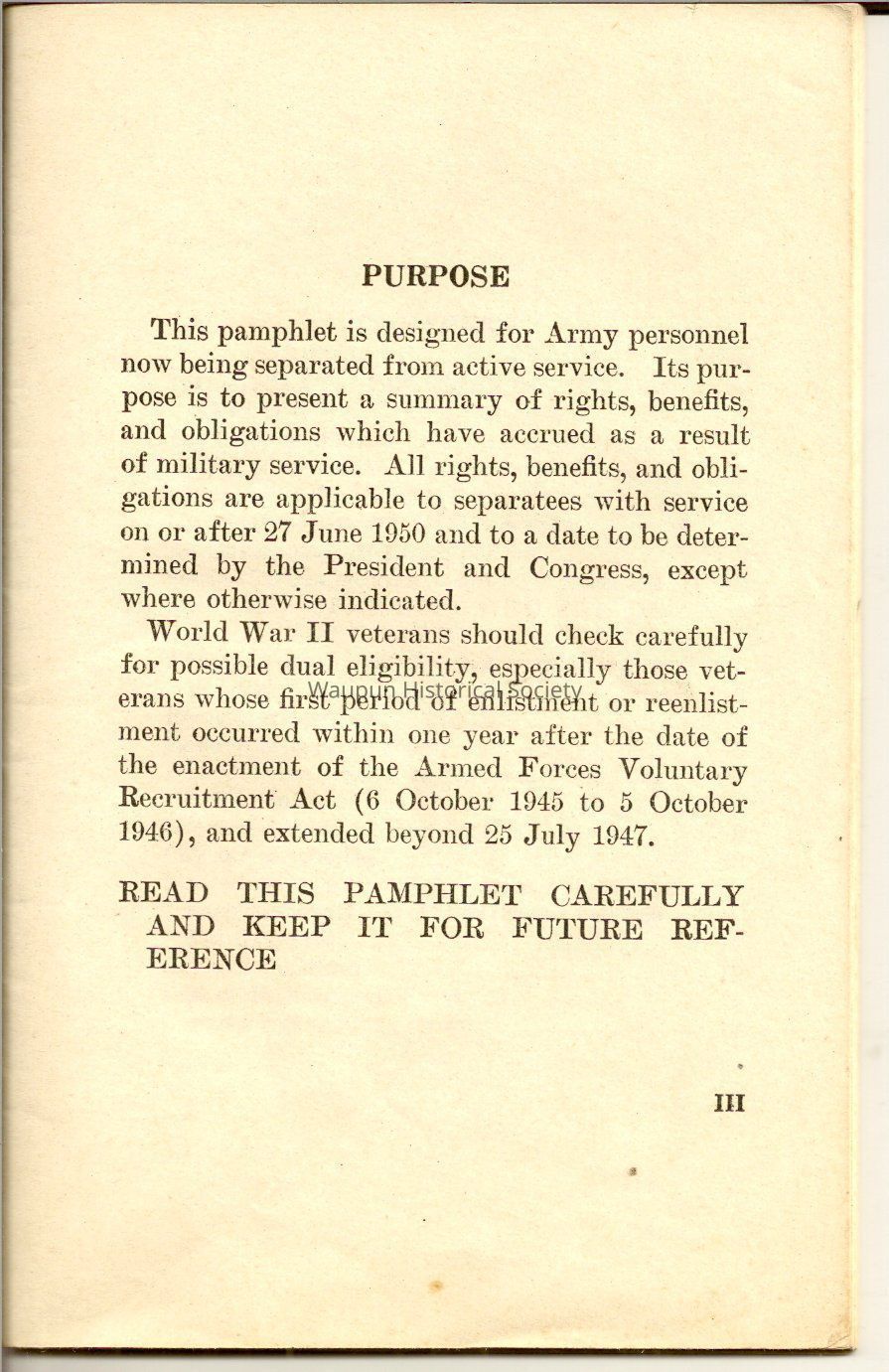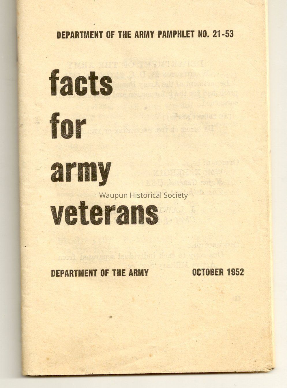 Booklet, No 21-53, Facts for Army Veterans, 1952