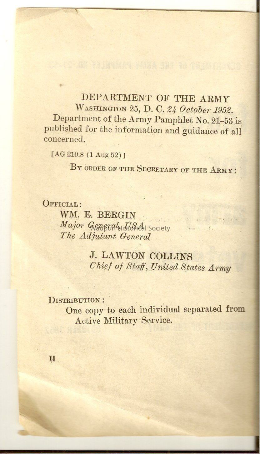 Dept. of the Army pamphlet no. 21-53, facts for army veterans, October 1952.