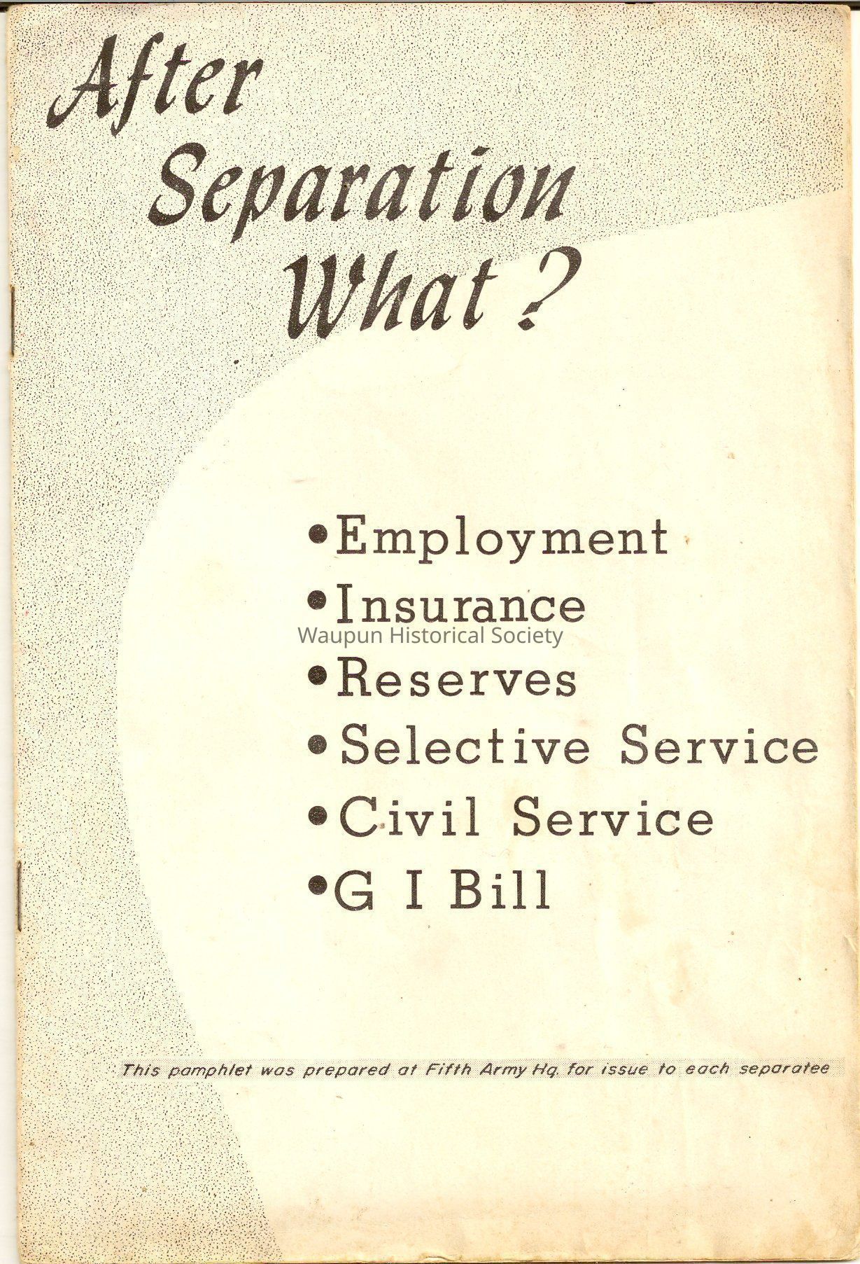 After Separation What? Employment, Insurance, Reserves, Selective Service, Civil Service, G I Bill