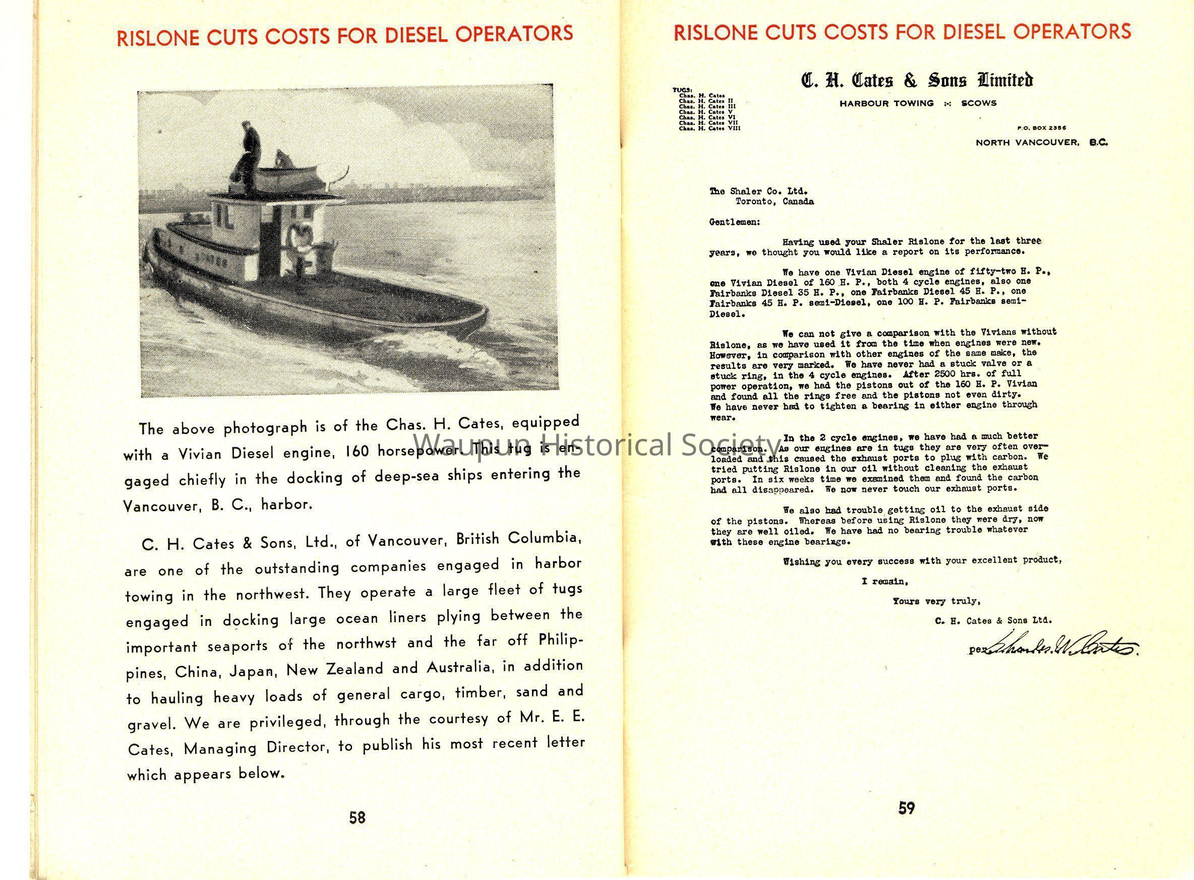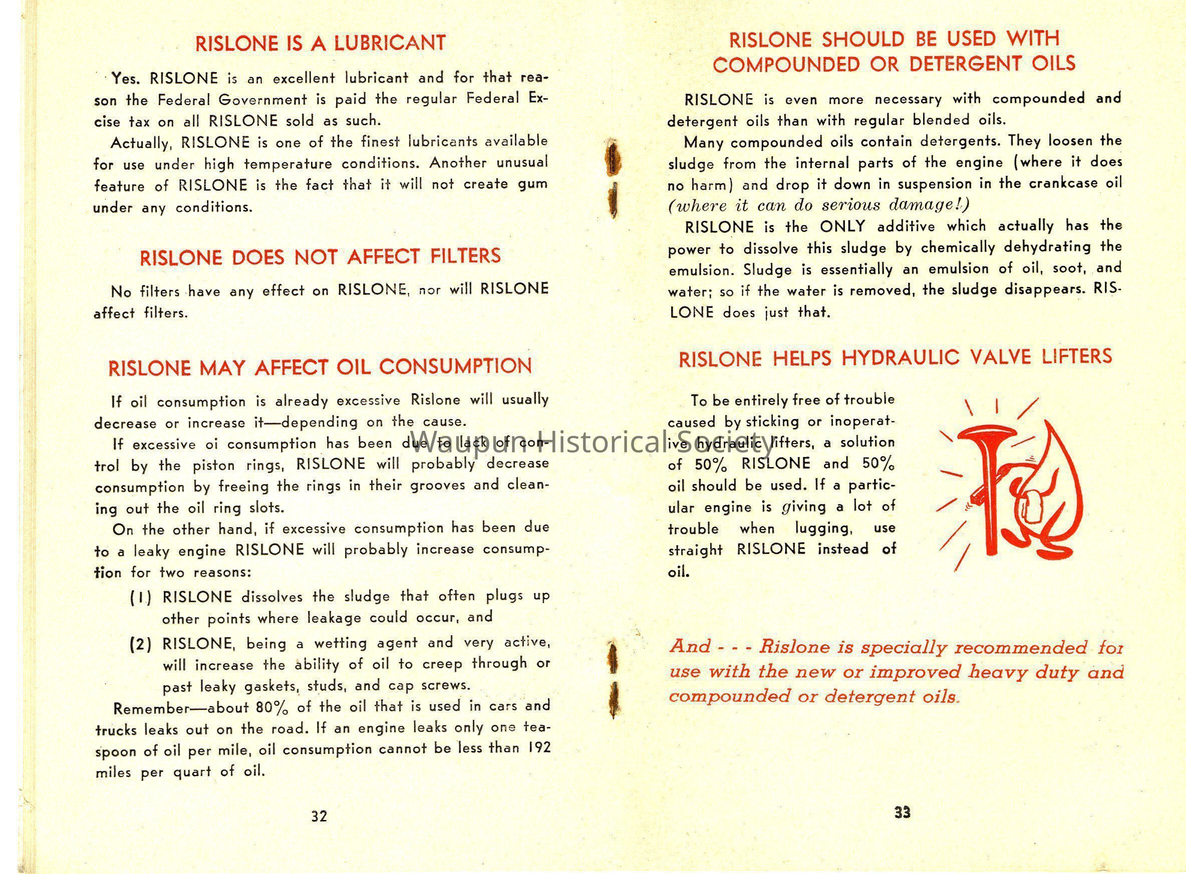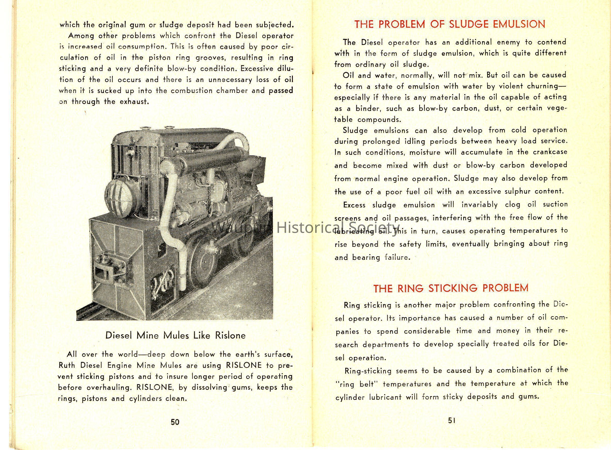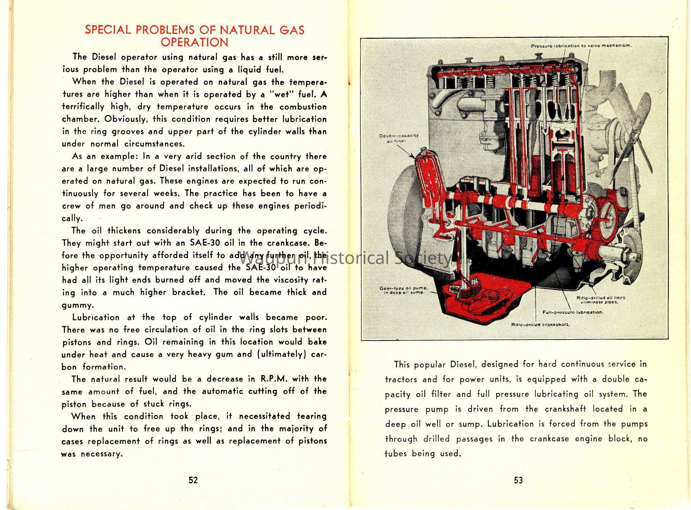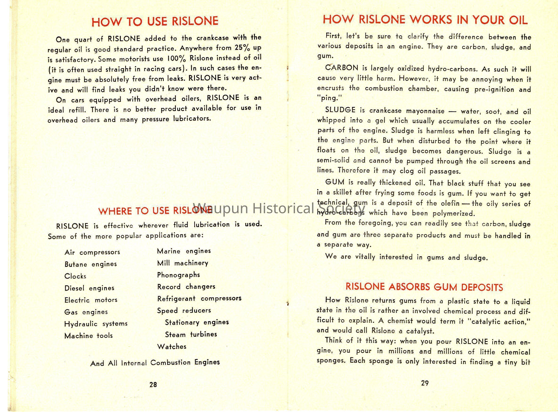 Informative booklet copyrighted by the Shaler Company of Waupun in 1940, entitled "Engine Performance" Included are the Karbout & Rislone Guarantees and several chapters on oil and various engines. There are two copies, one on display, the other stored with the photo collection.Acquisition