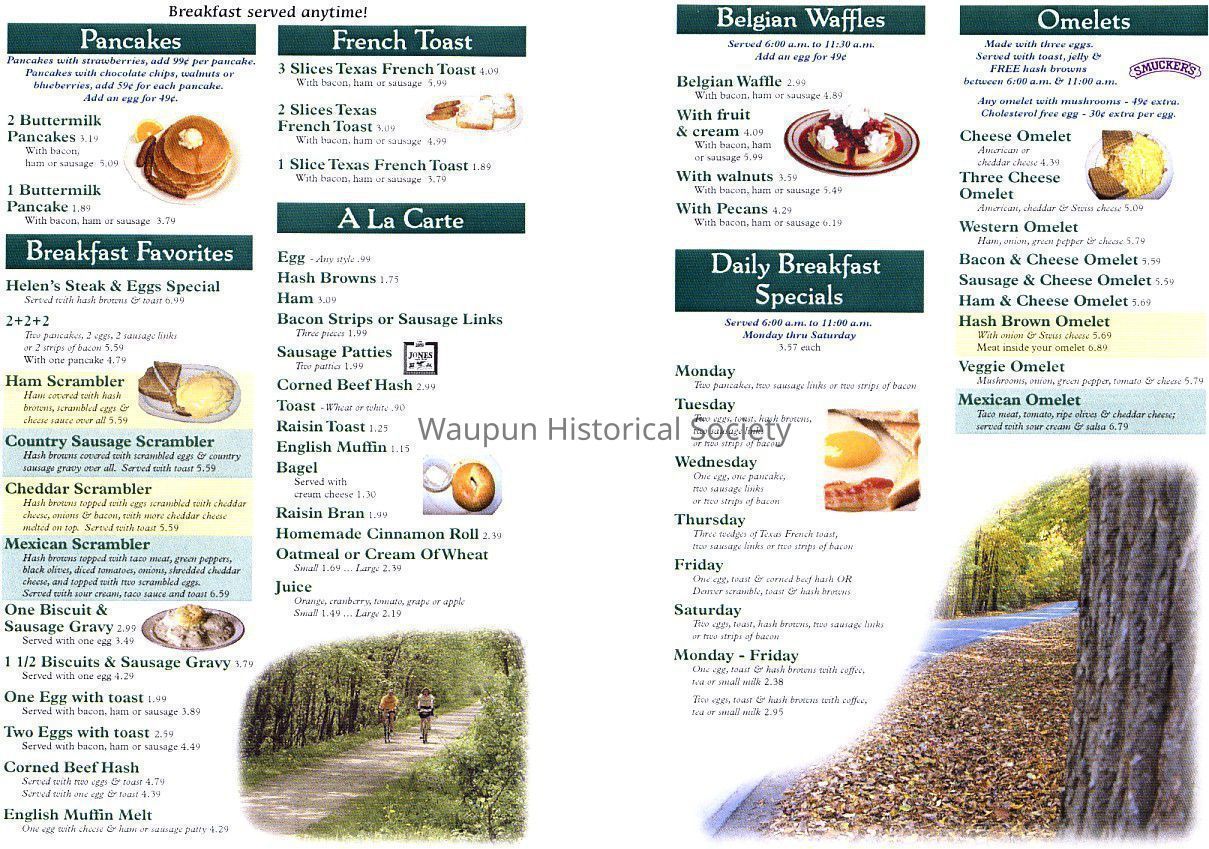 Helen's Kitchen Fold-Out Menu, "Located in Historic Waupun"